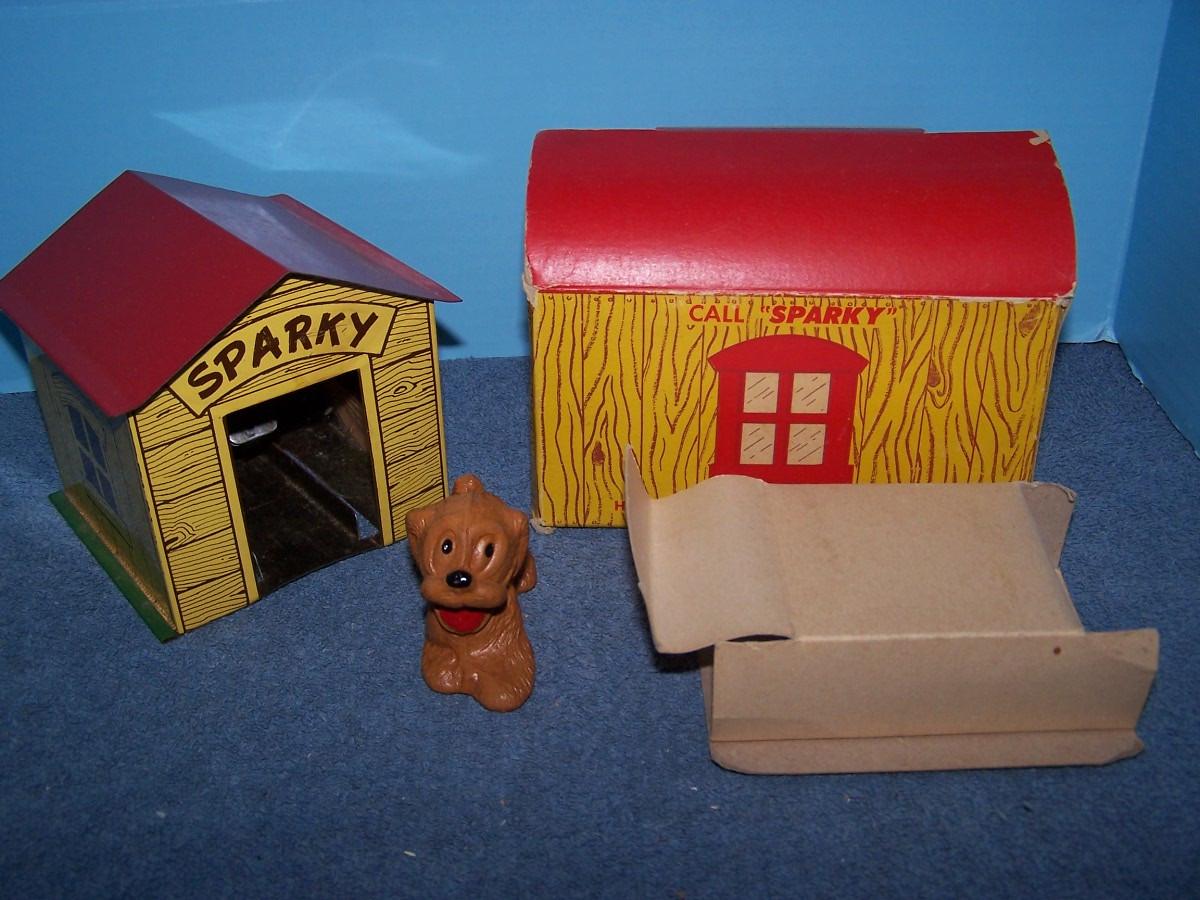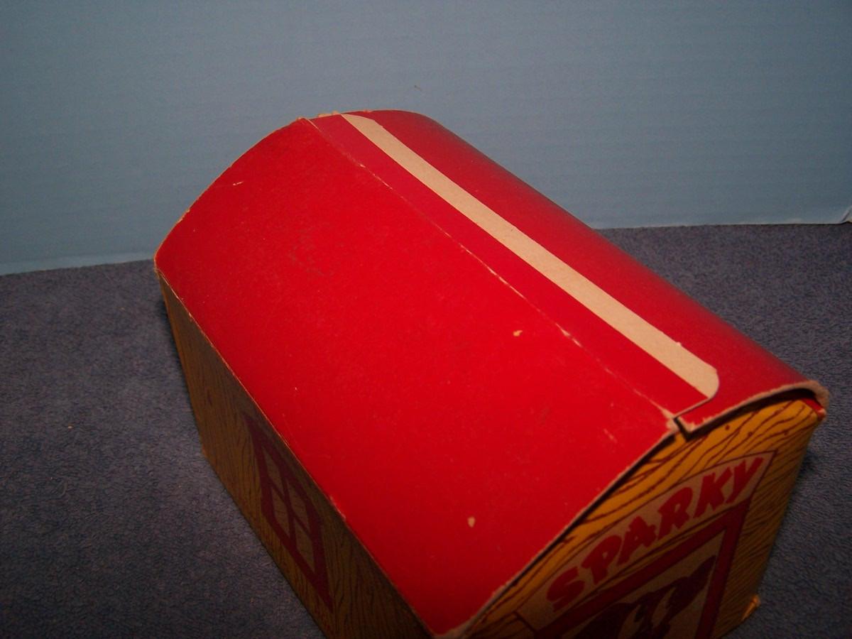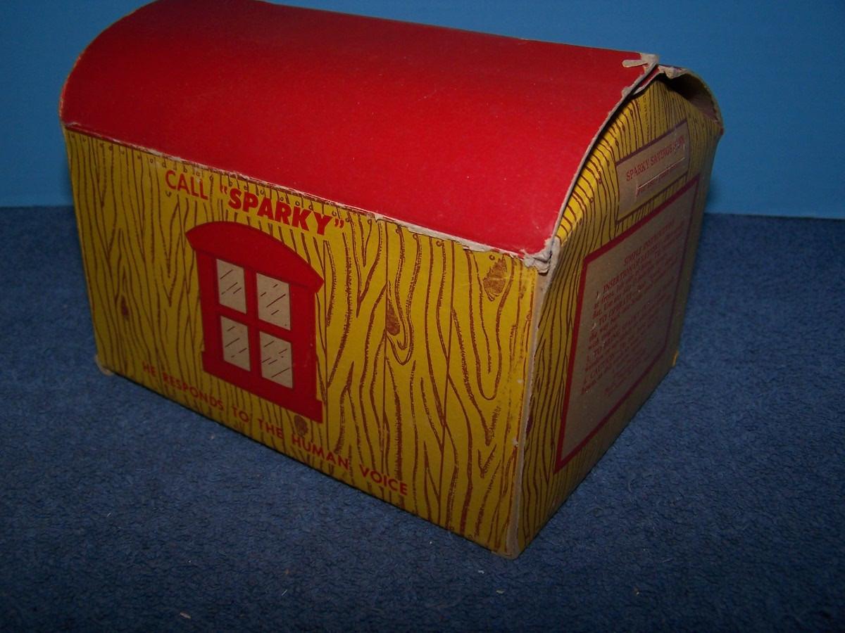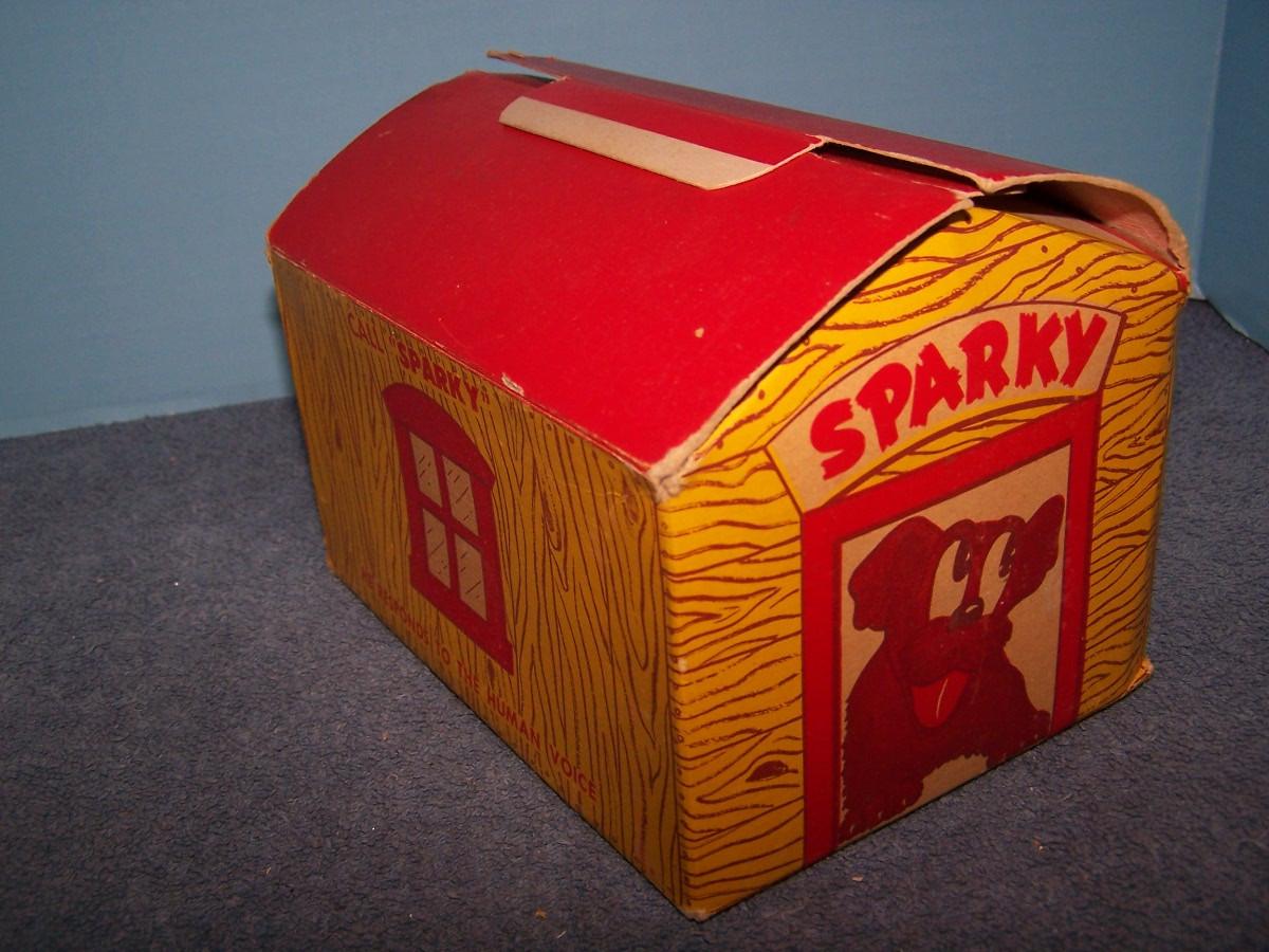 THIS IS A FABULOUS VINTAGE NMIB TIN LITHO SPARKY VOICE BANK!!! NOT PLAYED... WEAR/TEAR TO THE BOX...