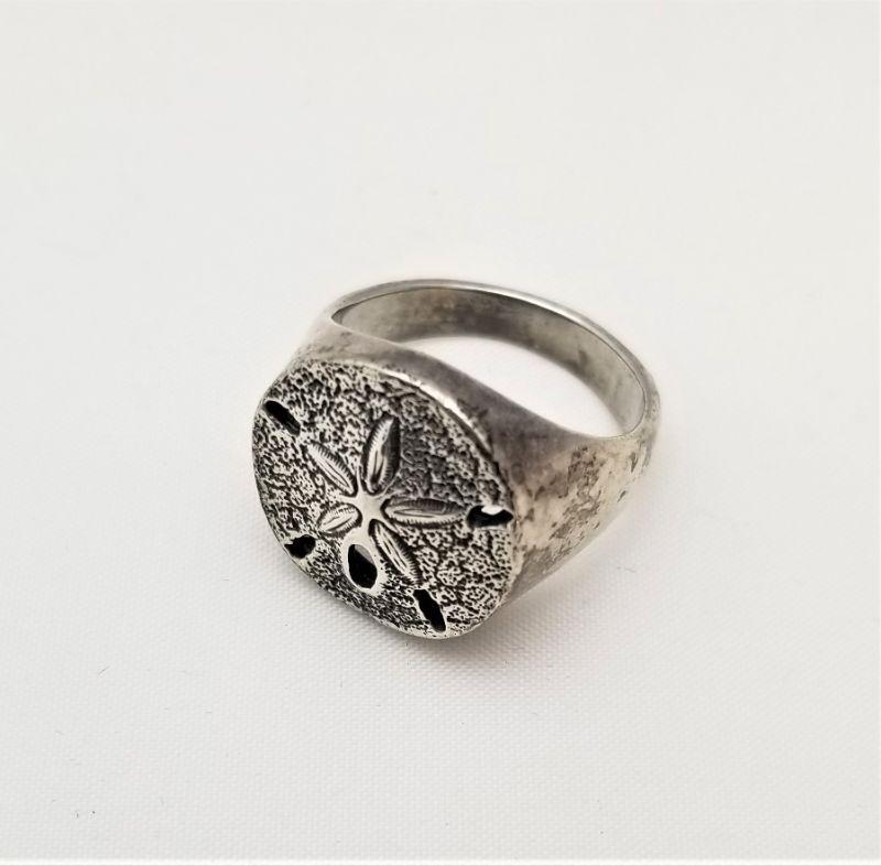 From the studios of noted jeweler James Avery - Sand dollar ring in sterling silver - size 7. Unisex design. I gave it a quick polish - you could really make it shine if you wanted. Gently used.