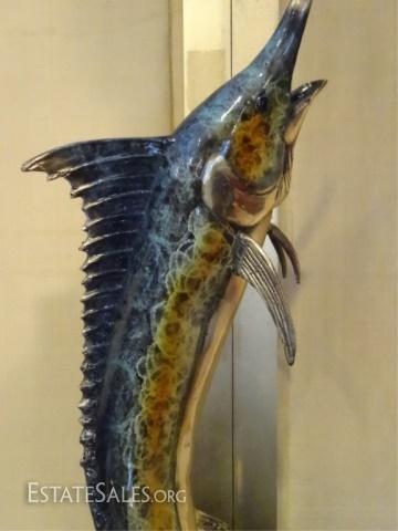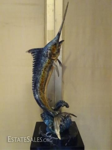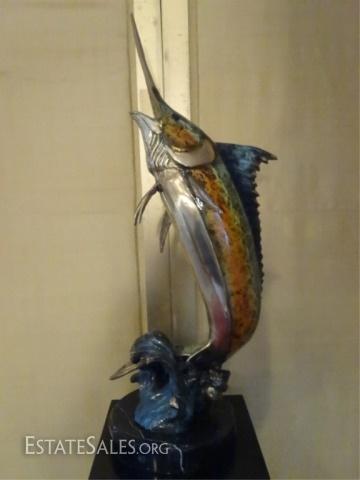 LOT 191: LARGE PATINATED BRONZE MARLIN SCULPTURE