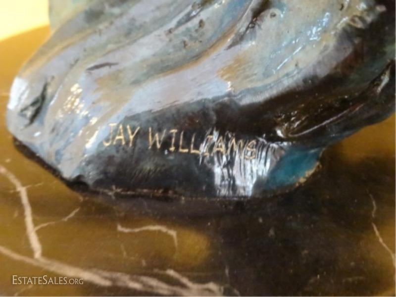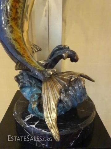 LOT 191: LARGE PATINATED BRONZE MARLIN SCULPTURE ON MARBLE BASE, SIGNED JAY WILLIAMS, NEW IN SHOWROOM CONDITION, 25"H X 10"D, SKU006.07 H369