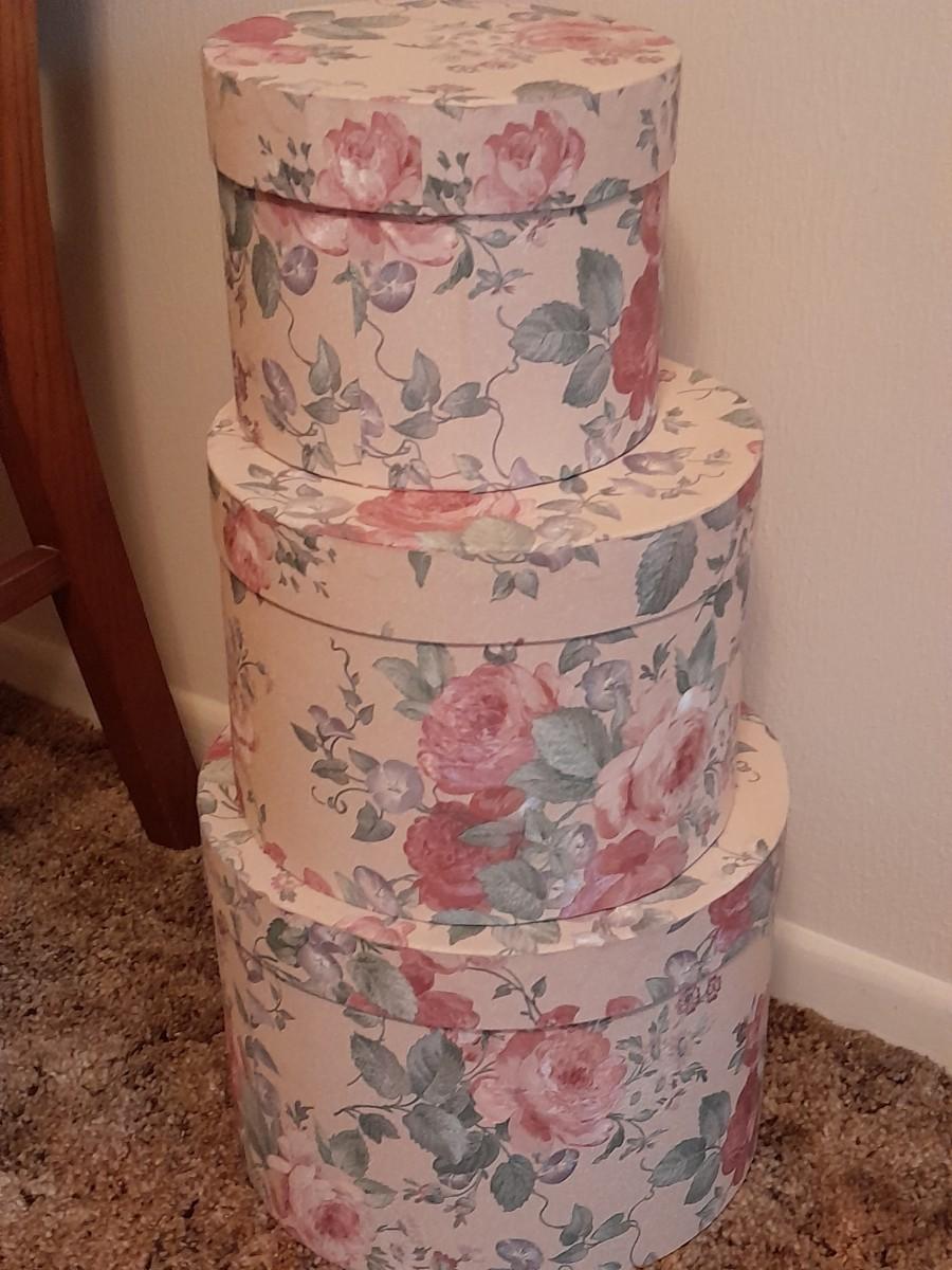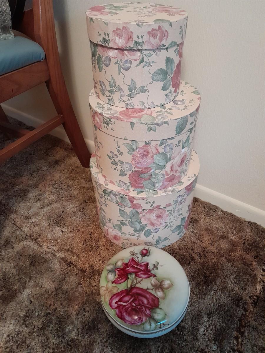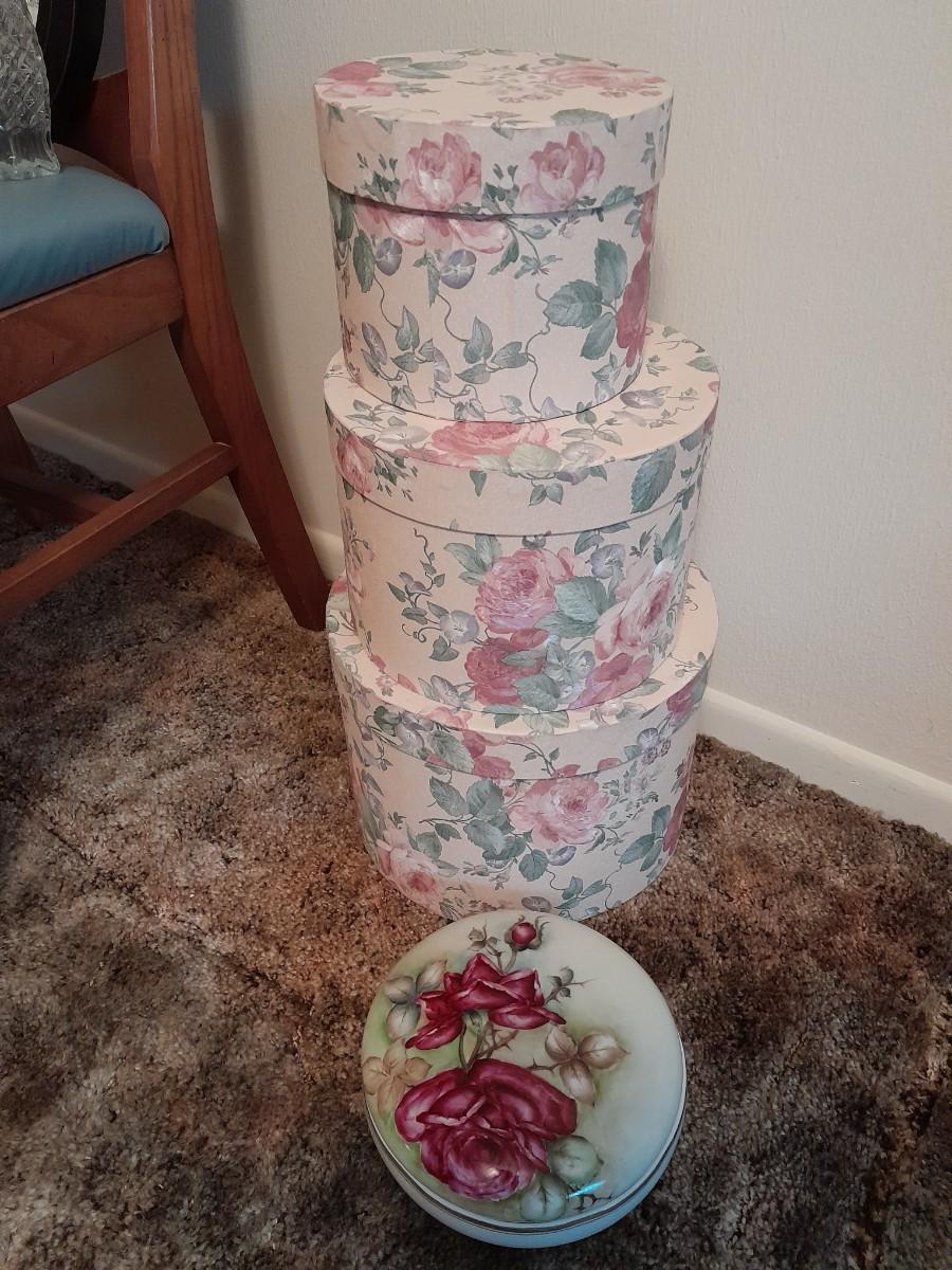 NESTING ROUND BOXES AND PORCELAIN LIDDED DISH