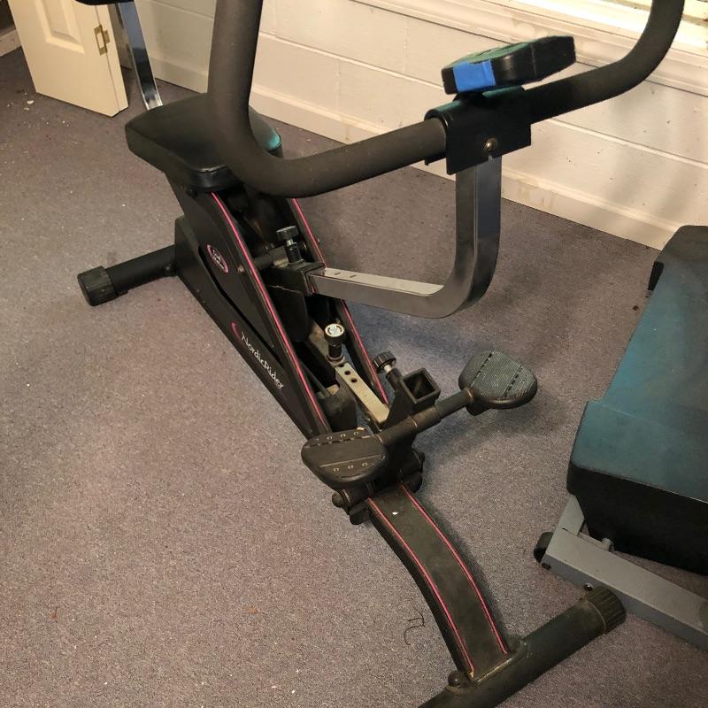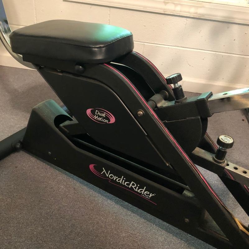 Dual motion machine here that will give you a total body workout. Push down on pedals while pulling up on bar. All adjustable heights. It comes with original manual but was not tested as the power is dead. Tape is in place to keep the electric box closed, see images. Unsure of battery needs to get it functioning but you can workout without the electronic part.