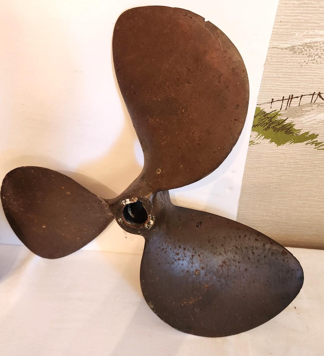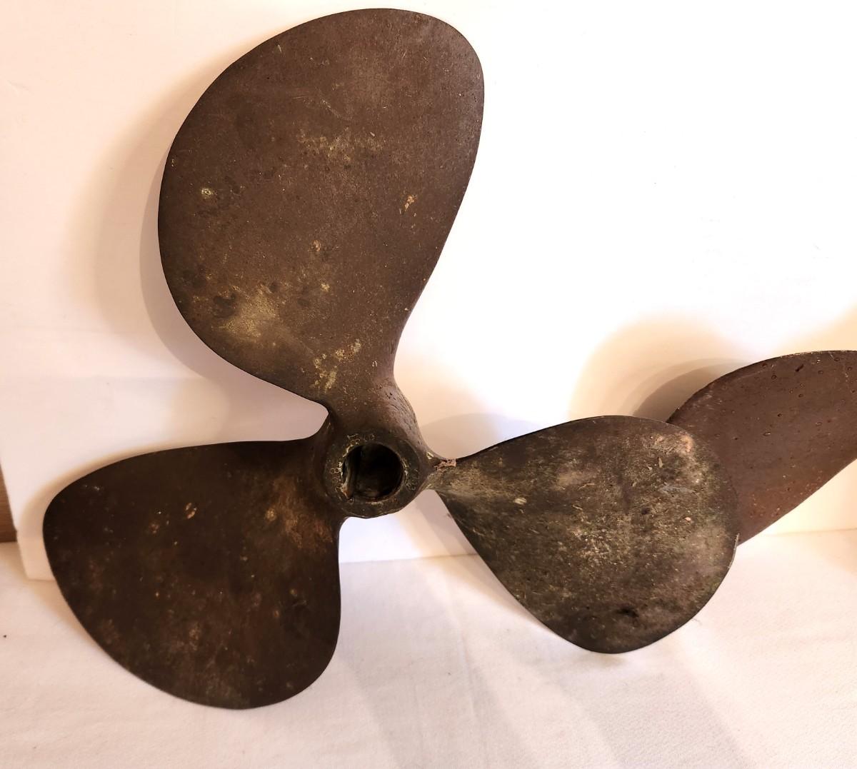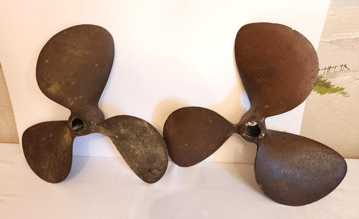 Pair of old heavy metal propellers - each 16" across. They have some markings - "W786" , etc.