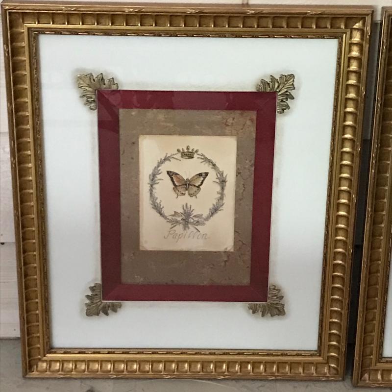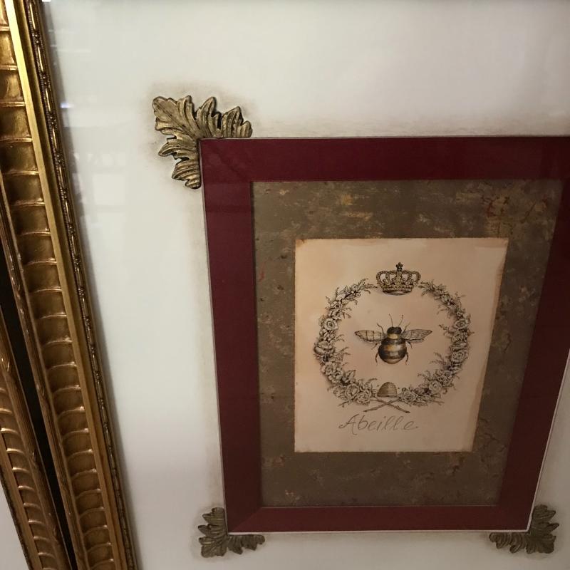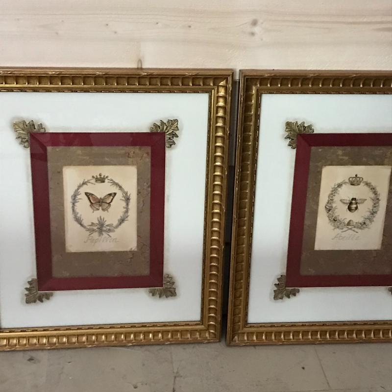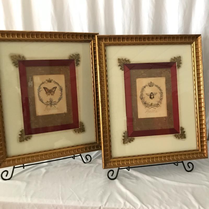 Two gold framed prints, one of a queen bee, and the other of a butterfly. Each is approx. 28” x 24”. No shipping available. Local pickup only in Maggie Valley, NC.