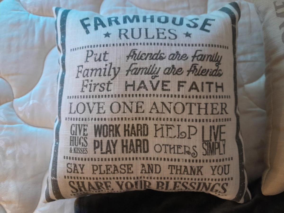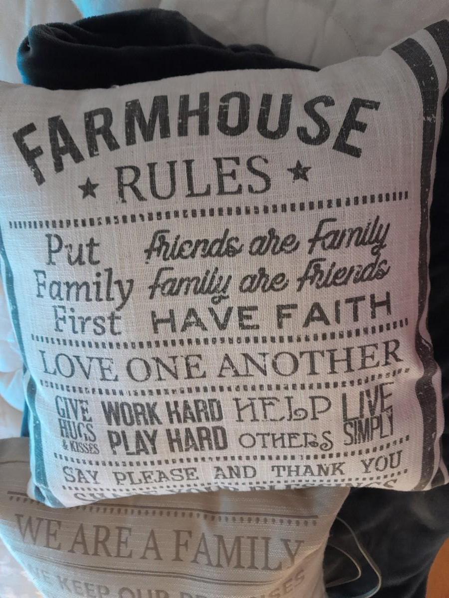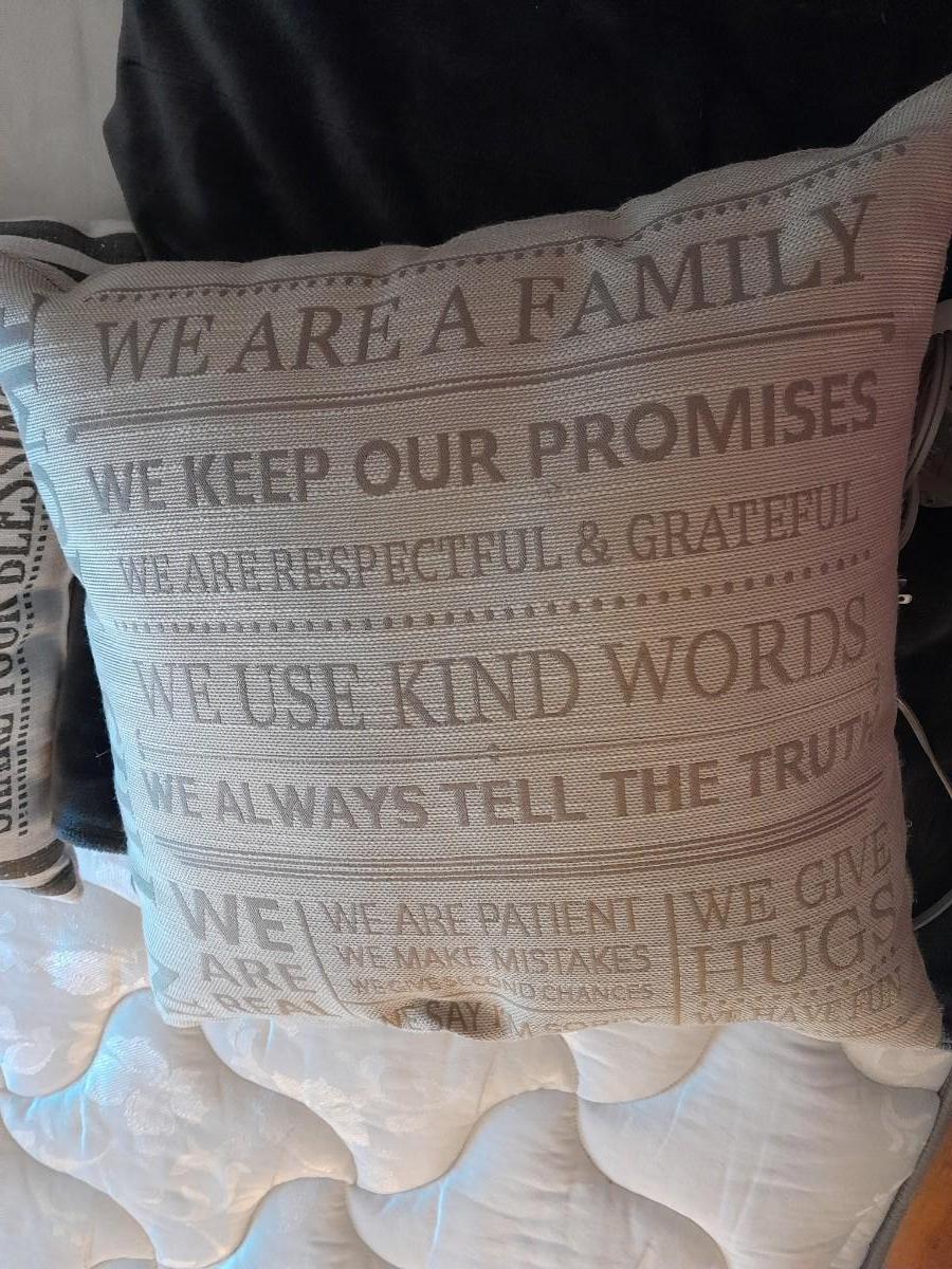 TWO THROW PILLOWS WITH SAYINGS AND AN ELECTRIC THROW BLANKET