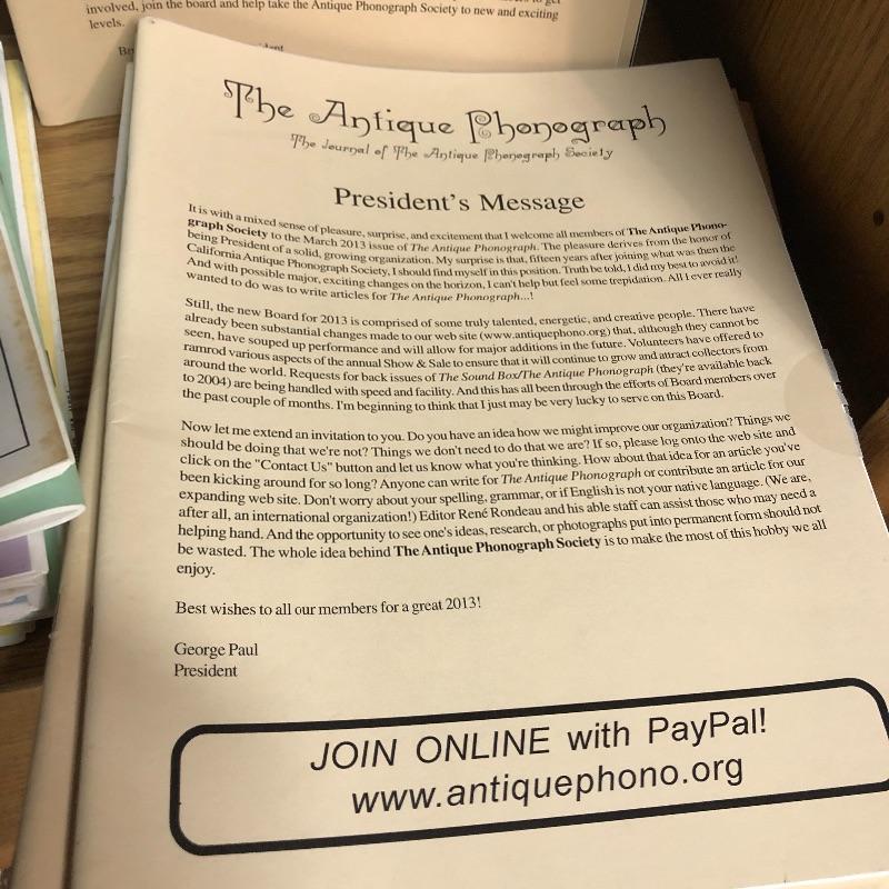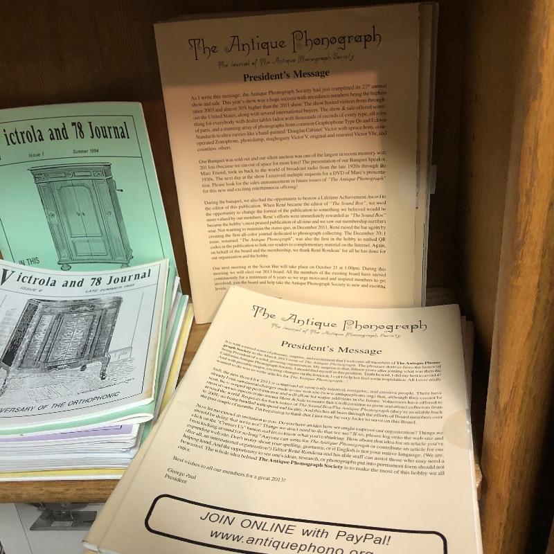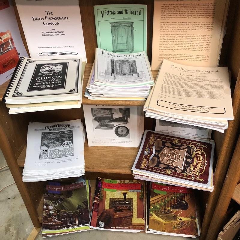 This lot contains the following: The Antique Phonograph, Victrola and 78 Journals, a variety of Edison manuals, The Sound Box, and In the Grove magazines.