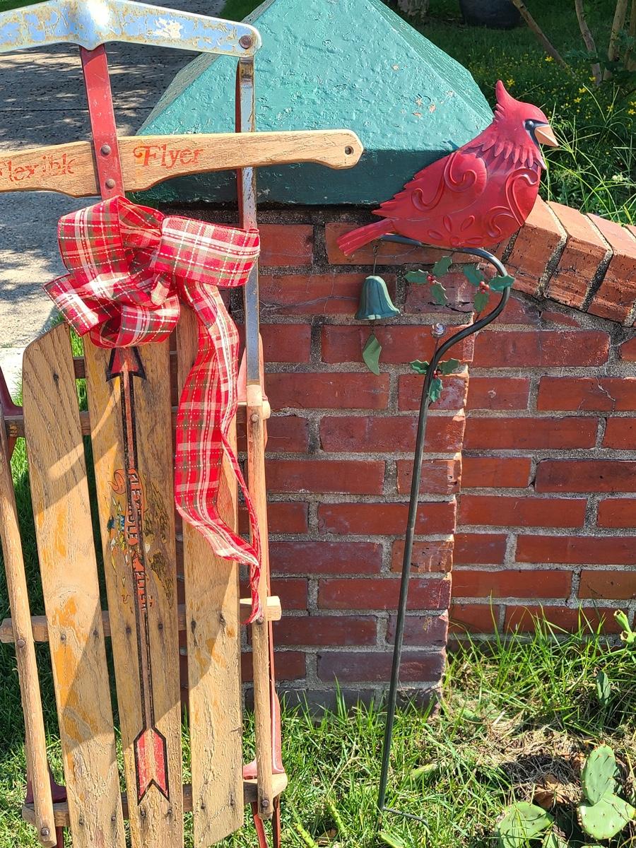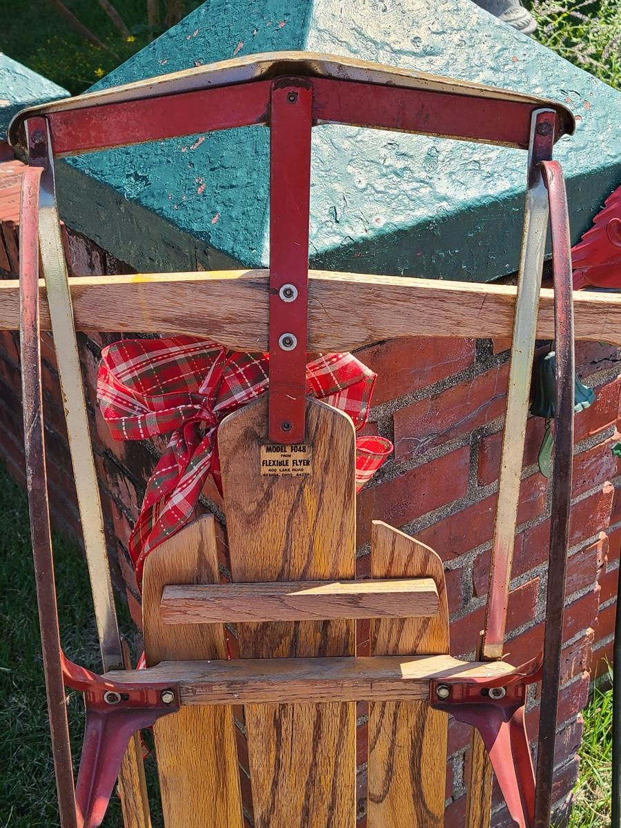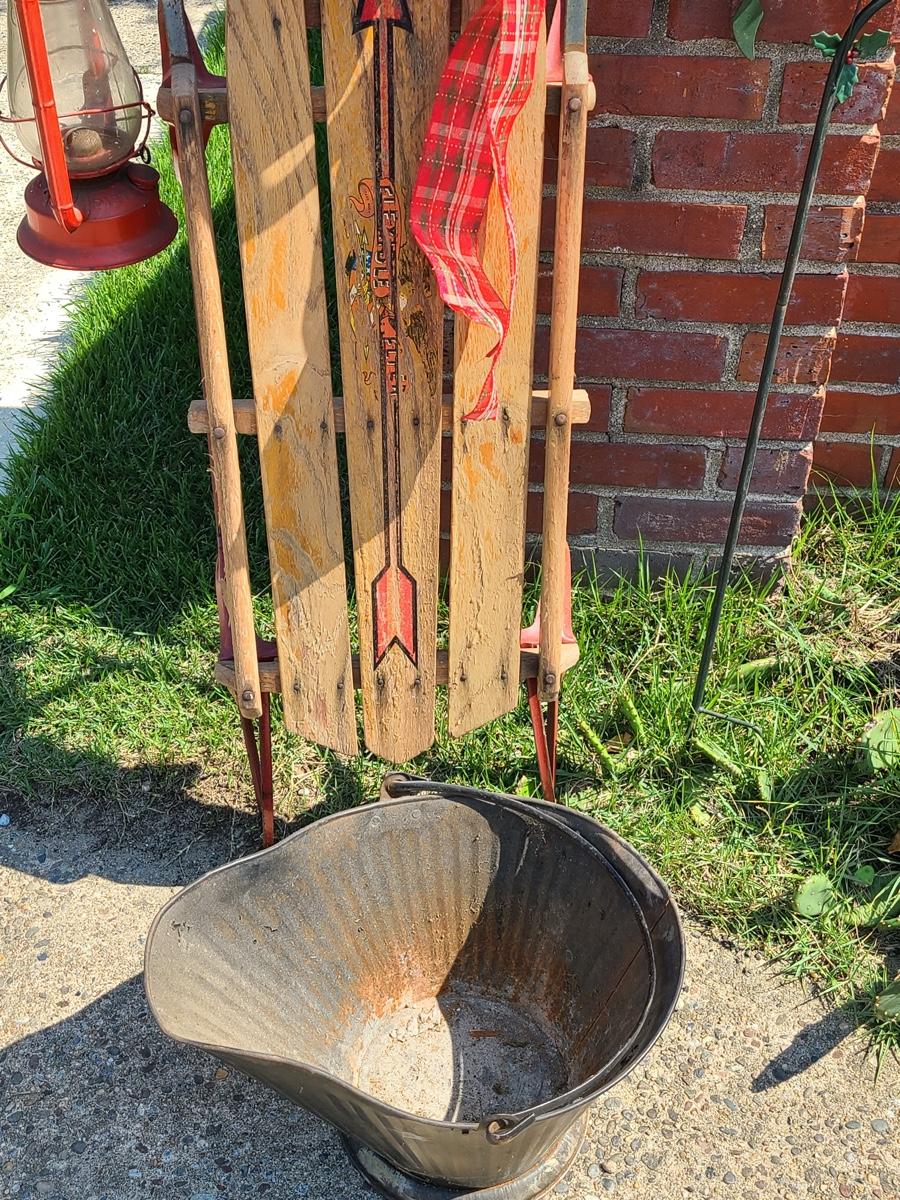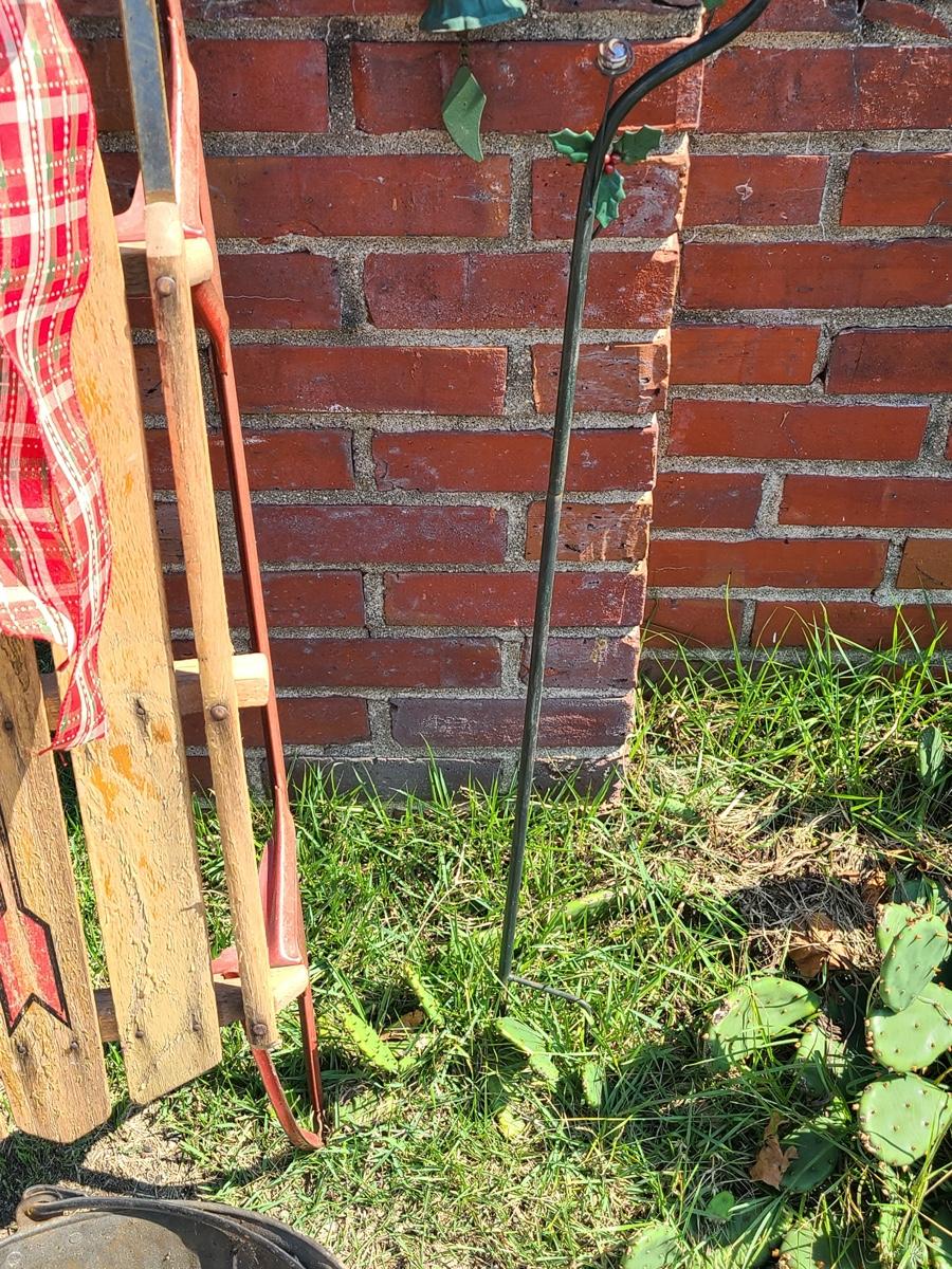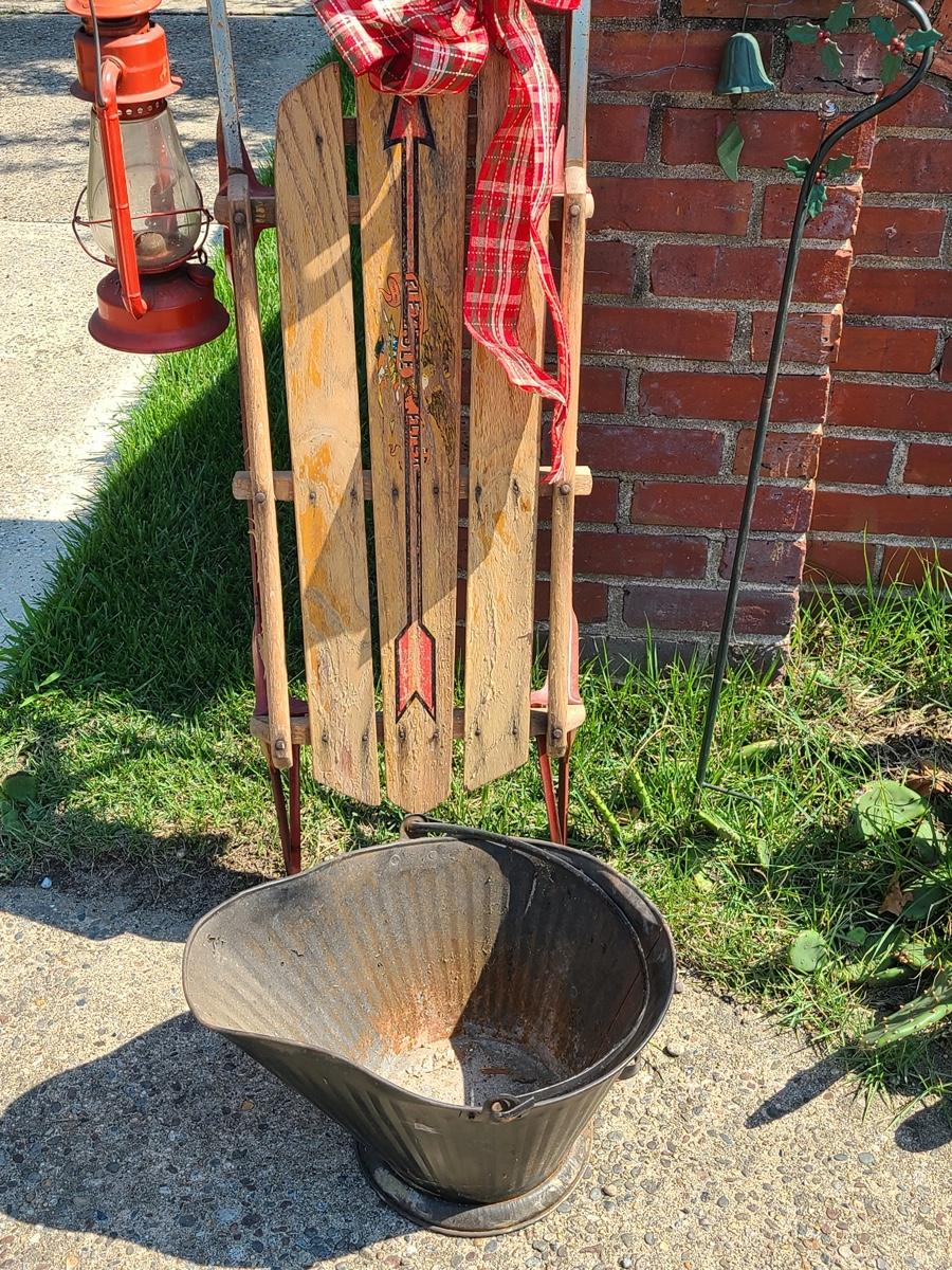 Lot 191: Vintage Flexible Flyer Sled, Dietz Red Lantern, Cardinal Yard Stake and More