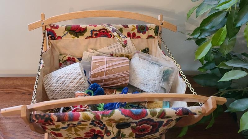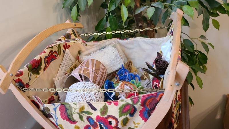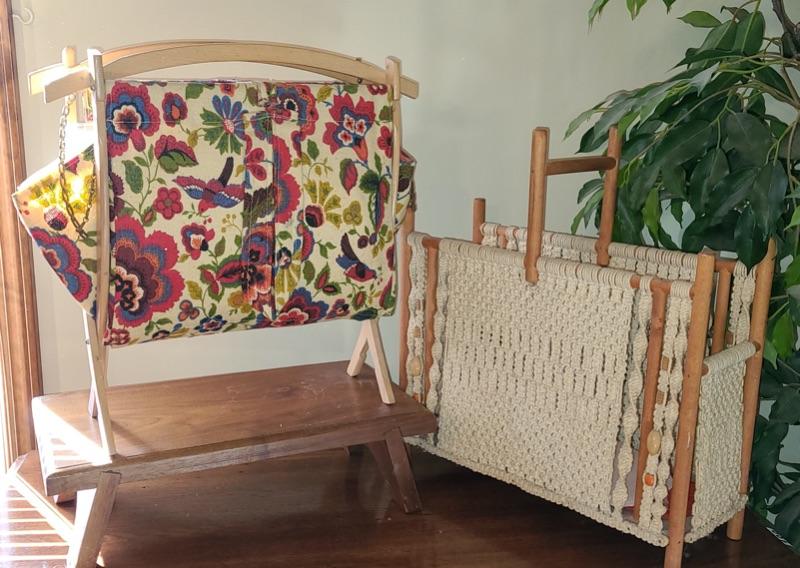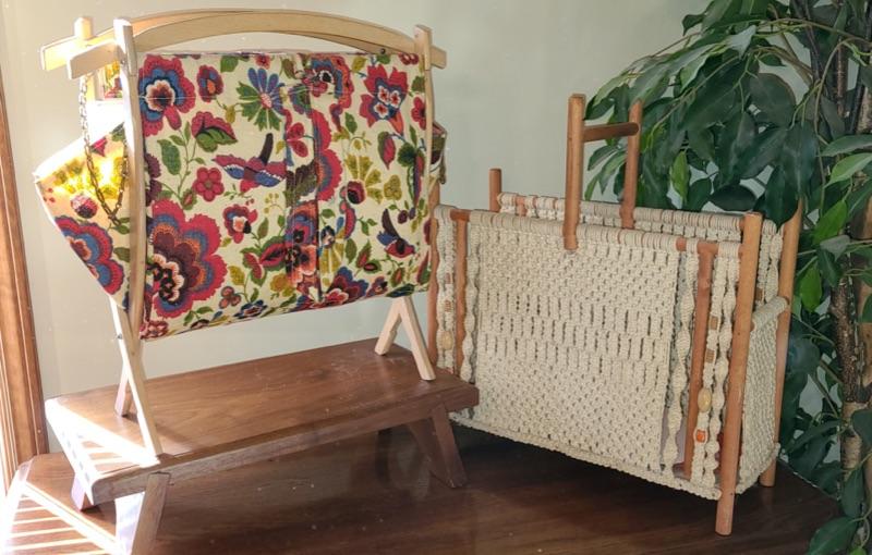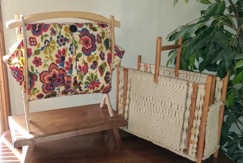 Lot 191: BOHO Vintage Sewing Baskets & Wood Stool