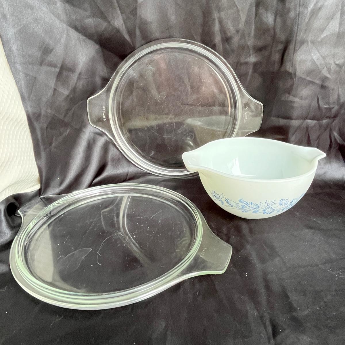 Lids & a small bowl. Bowl has some wear, but in good shape.