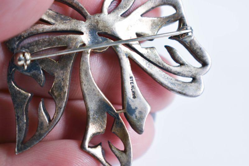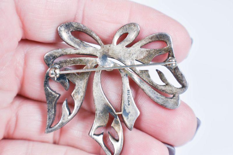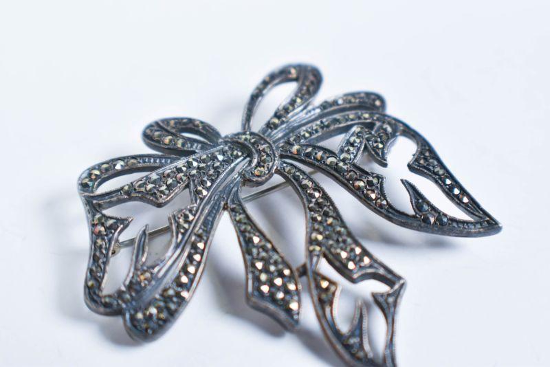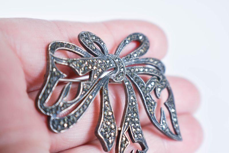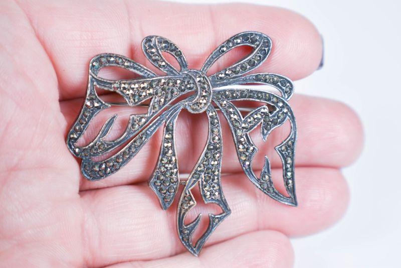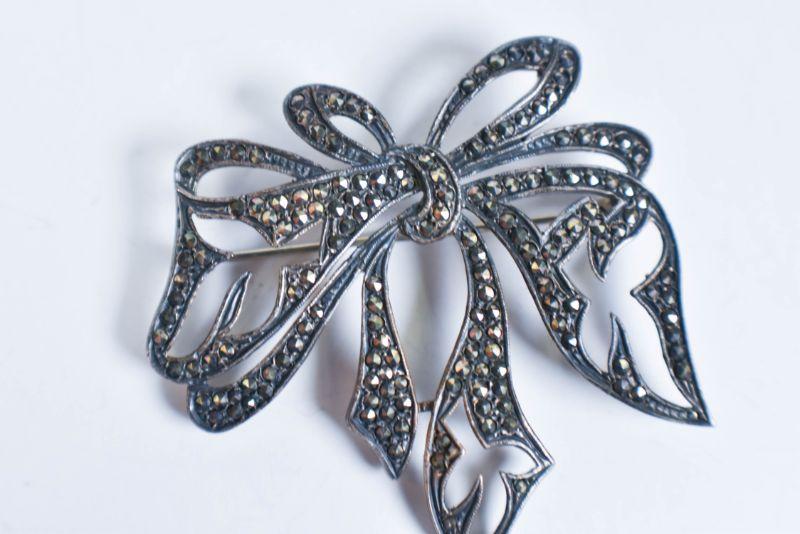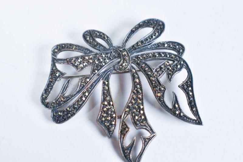 Lot 192-Sterling & Marcasite Vintage Bow Brooch