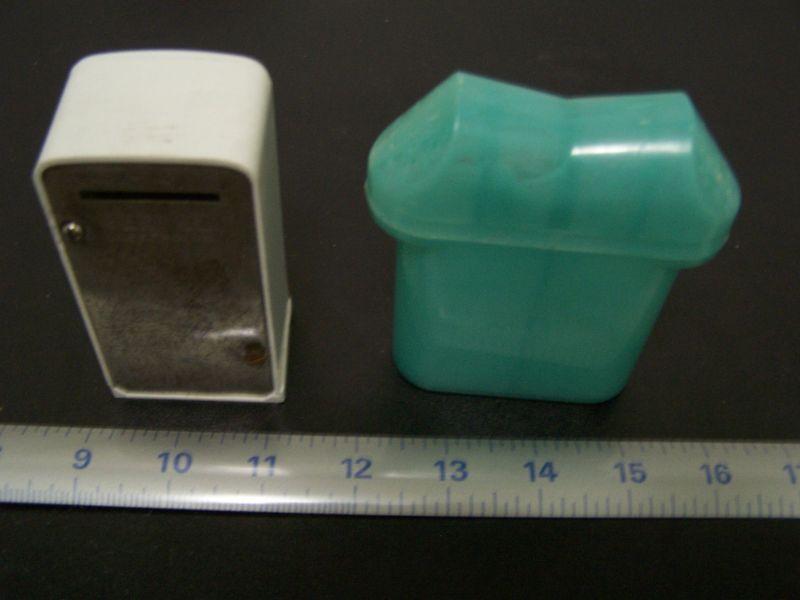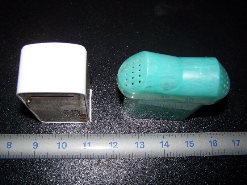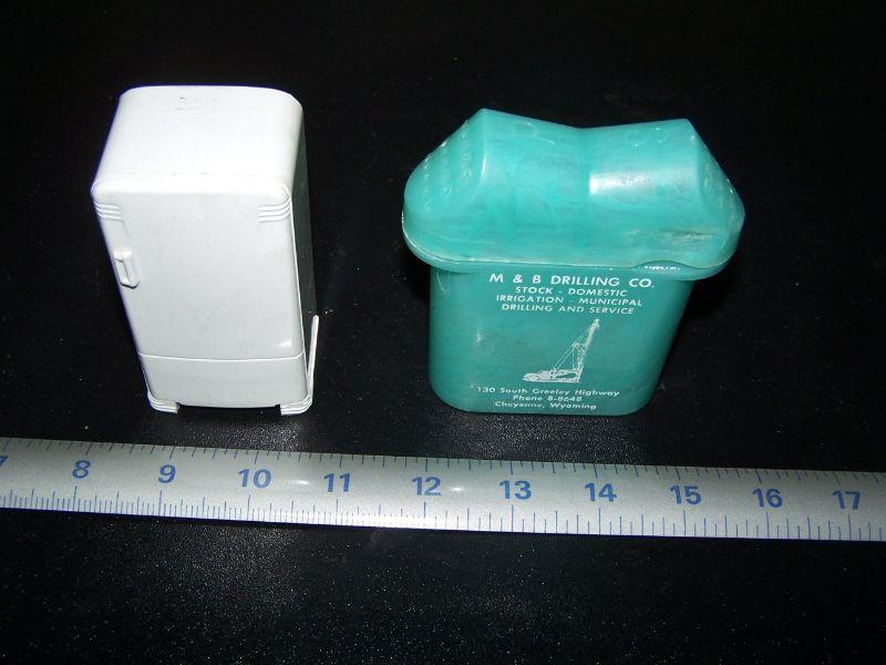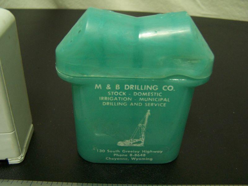 SALT & PEPPER SHAKER ADVERTISING FOR M & B DRILLING (TOP IS MELTED A BIT)