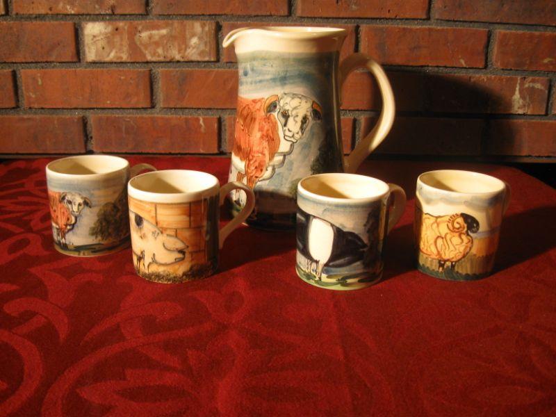 Iden Pottery Rye Sussex England Pitcher and Coffee Cups
