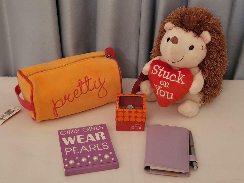 Lot 192: New Makeup Bag, Lip Gloss Ring, Notepads and Plushie