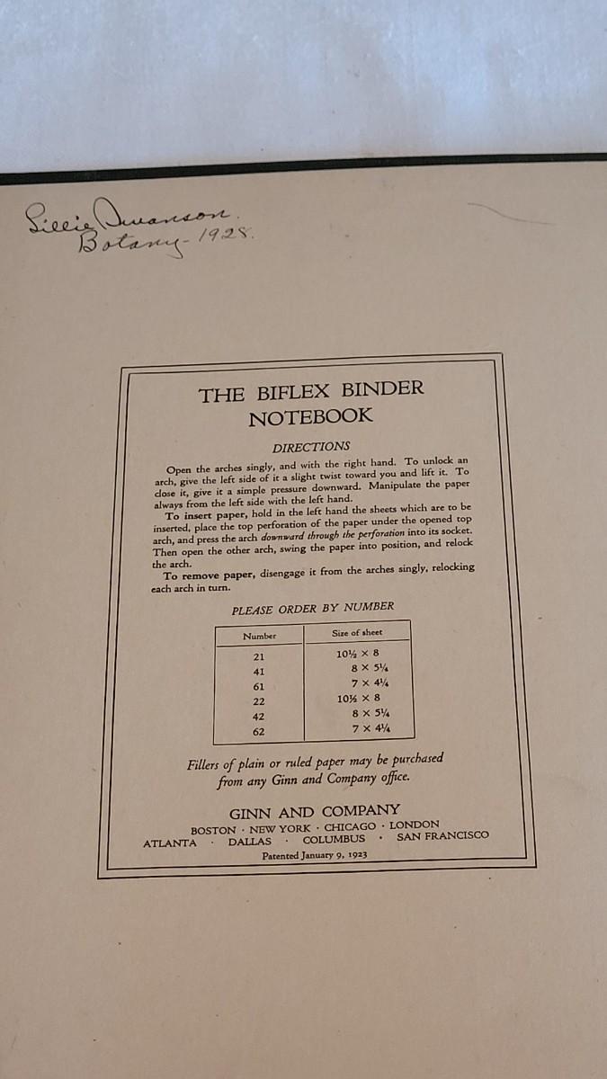 ***Student Botany Workbook for a Ms. Lillie Swanson from 1928