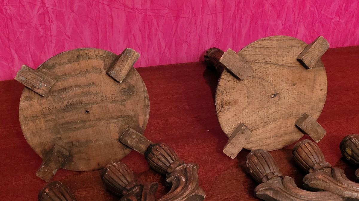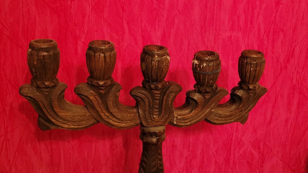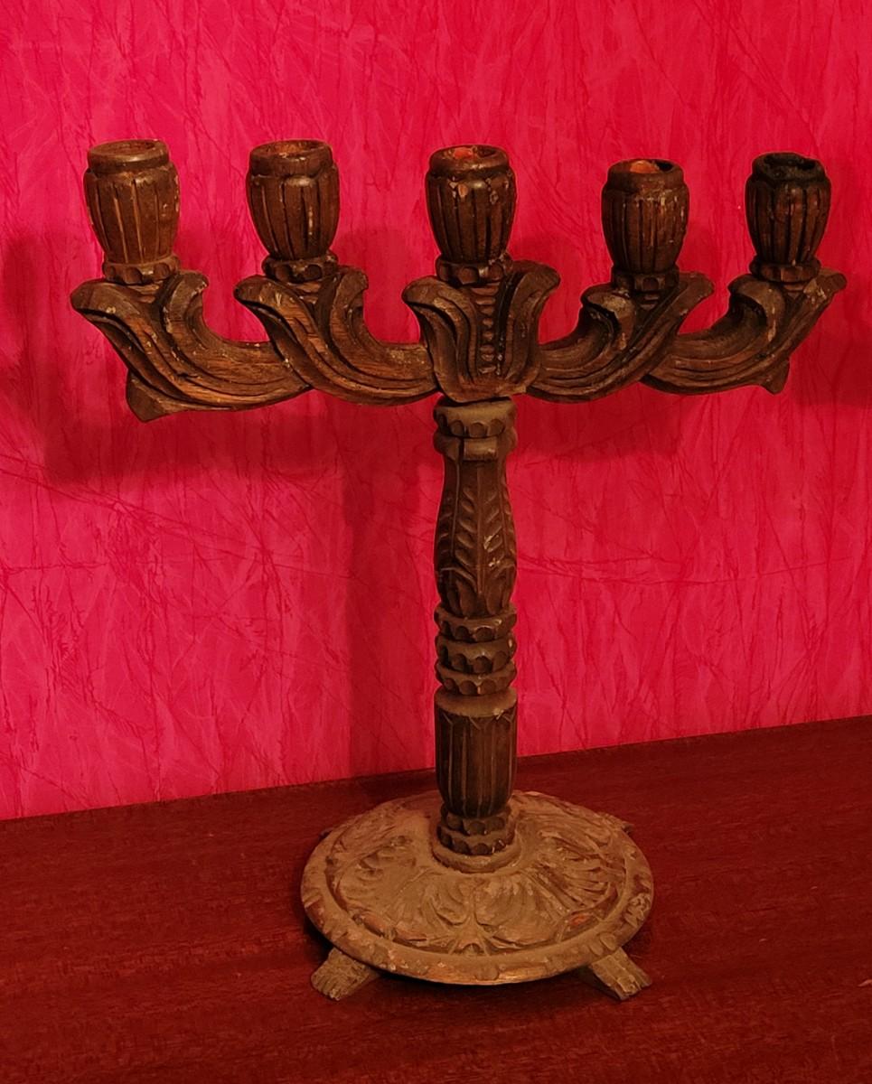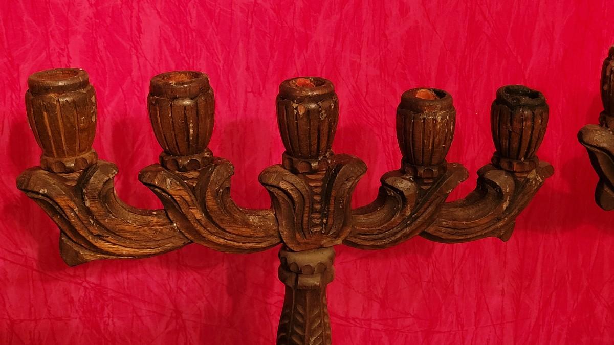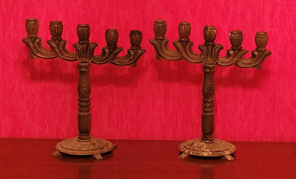 Lot 192: Antique Spanish Revival Style Mexican Wood Candelabras