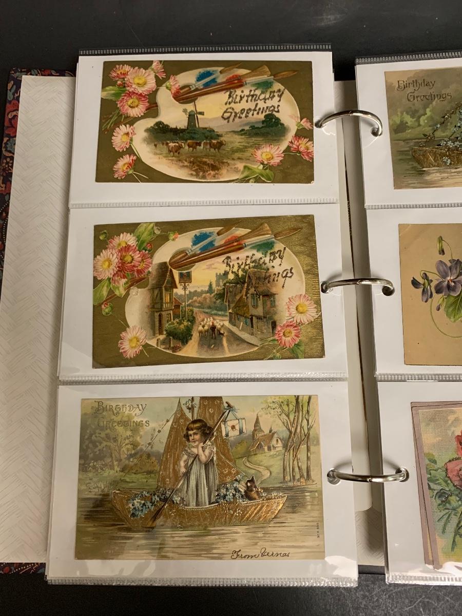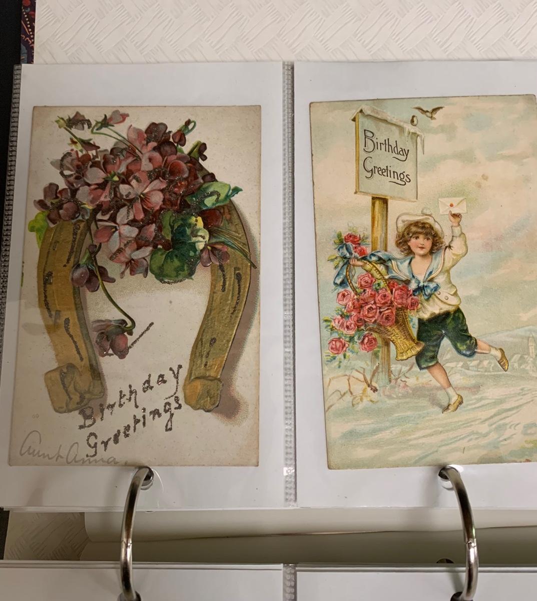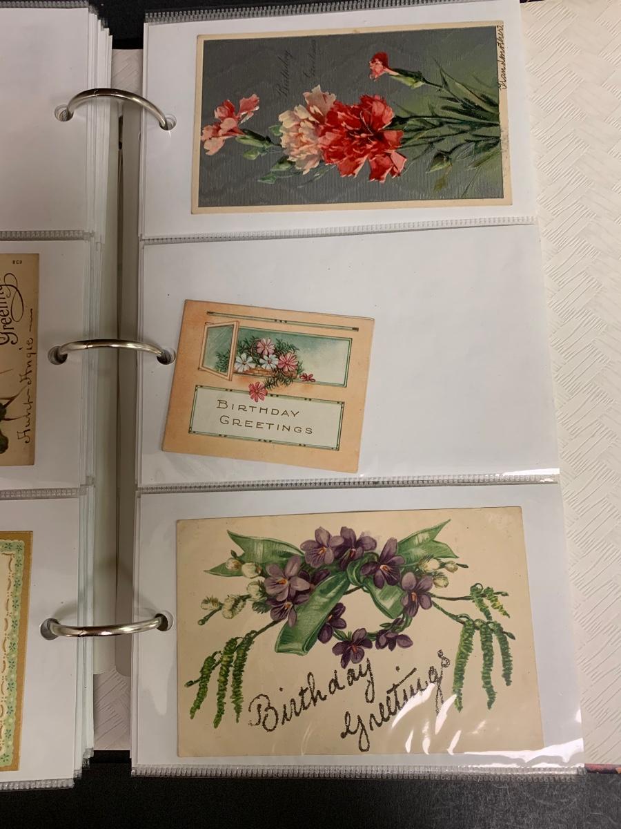 NEW INFORMATION IN CAPITAL LETTERS; WE WENT BACK AND DID A COUNT OF THE POSTCARDS AFTER MANY QUESTIONS. THIS ALBUM HAS ATLEAST 150 POST CARDS. ALSO, MOST HAVE SOME FORM A WRITING ON THEM WHETHER IT IS A NAME, MESSAGE, OR ADDRESS. THESE ALSO DATED AS EARLY AS 1906. INTERESTING LOCAL NAMES AND PLACES AS WELL. Photo album full of vintage postcards. We did not have time to go through all of these, so some may be new and some used. This collection also includes glued collages of mini postcards. Please see all pictures as they are the best representation of the items. The pictures show condition, measurements if taken, and what is included in the lot. Due to the large amount that we photograph and the time frame, we are not always able to take measurements. All items unless noted, are pre-owned and have been used. If you purchased furniture, you must bring help. We do not allow one person to carry large furniture out on their own. Bring help, tools and a truck for the safety of our client’s homes, and your personal safety. Company policy. Thank you.