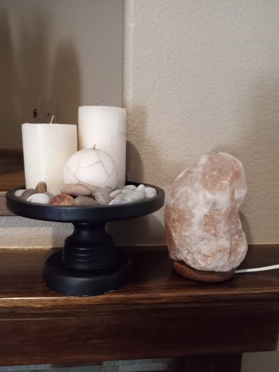 LOT 192  SALT LAMP AND A CANDLE CENTERPIECE