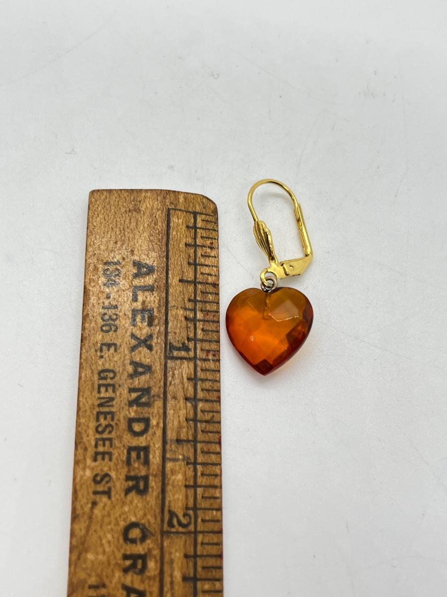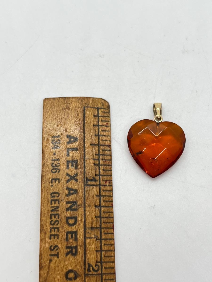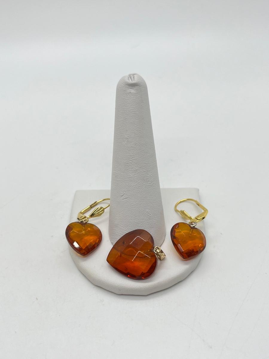 LOT 192 1/20 14K Gold Fill : Amber Heart Pendant + Matching Earrings