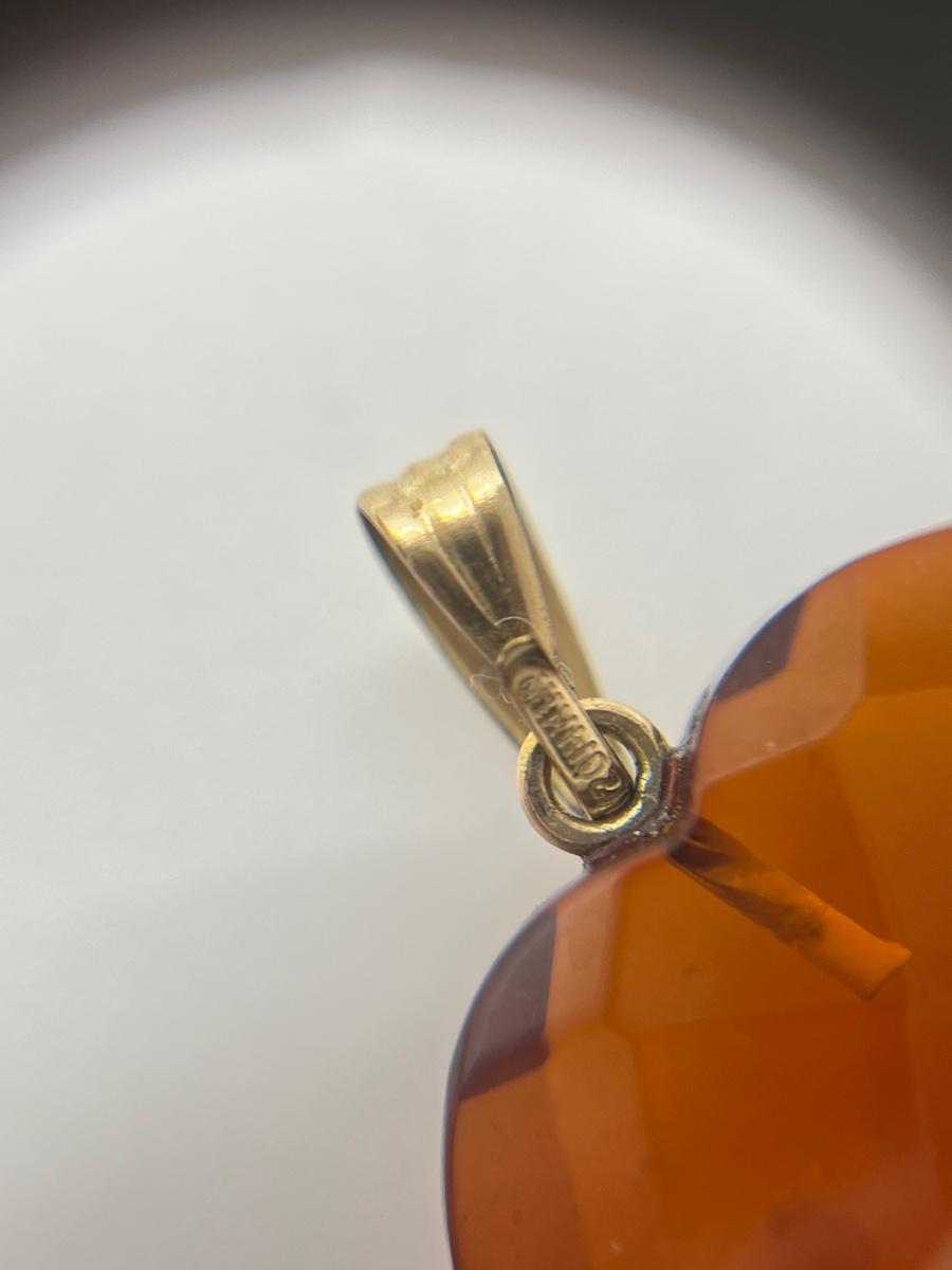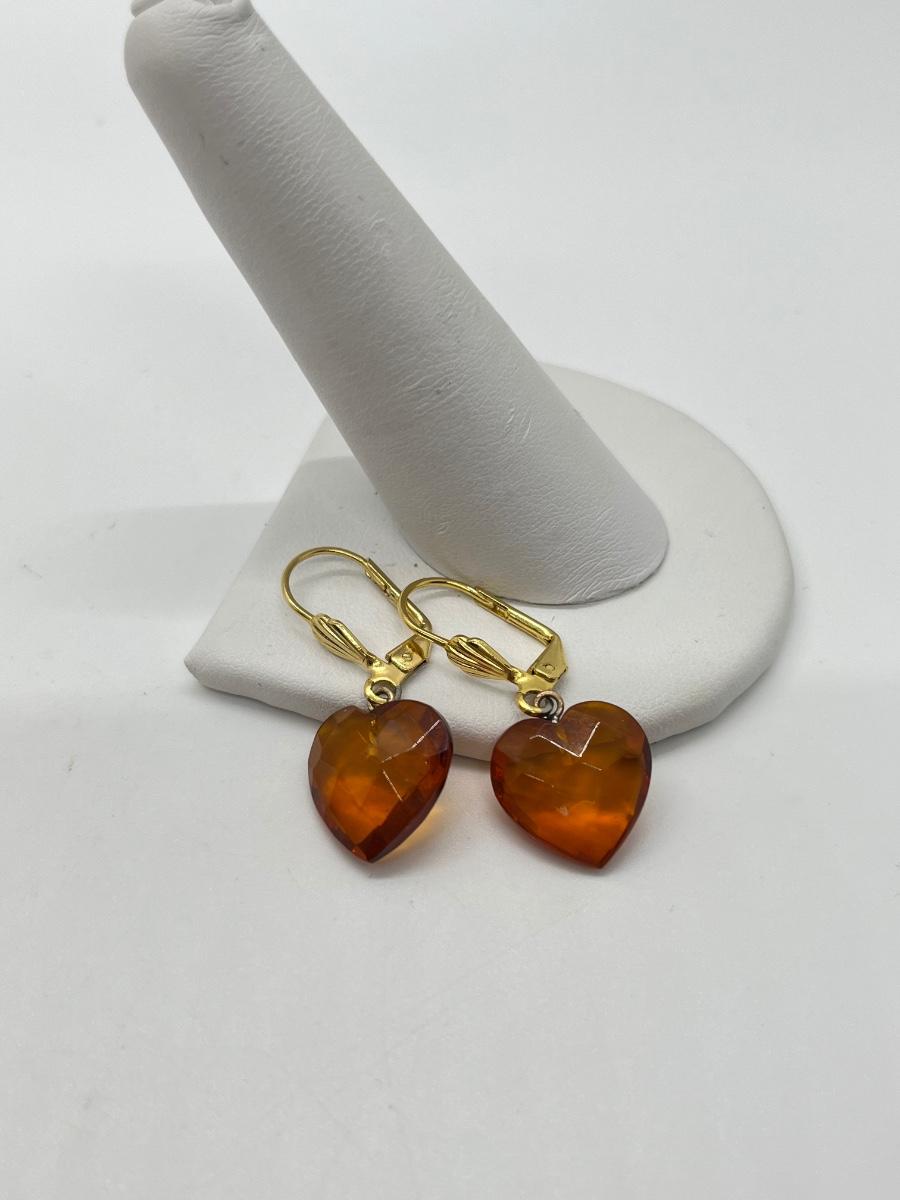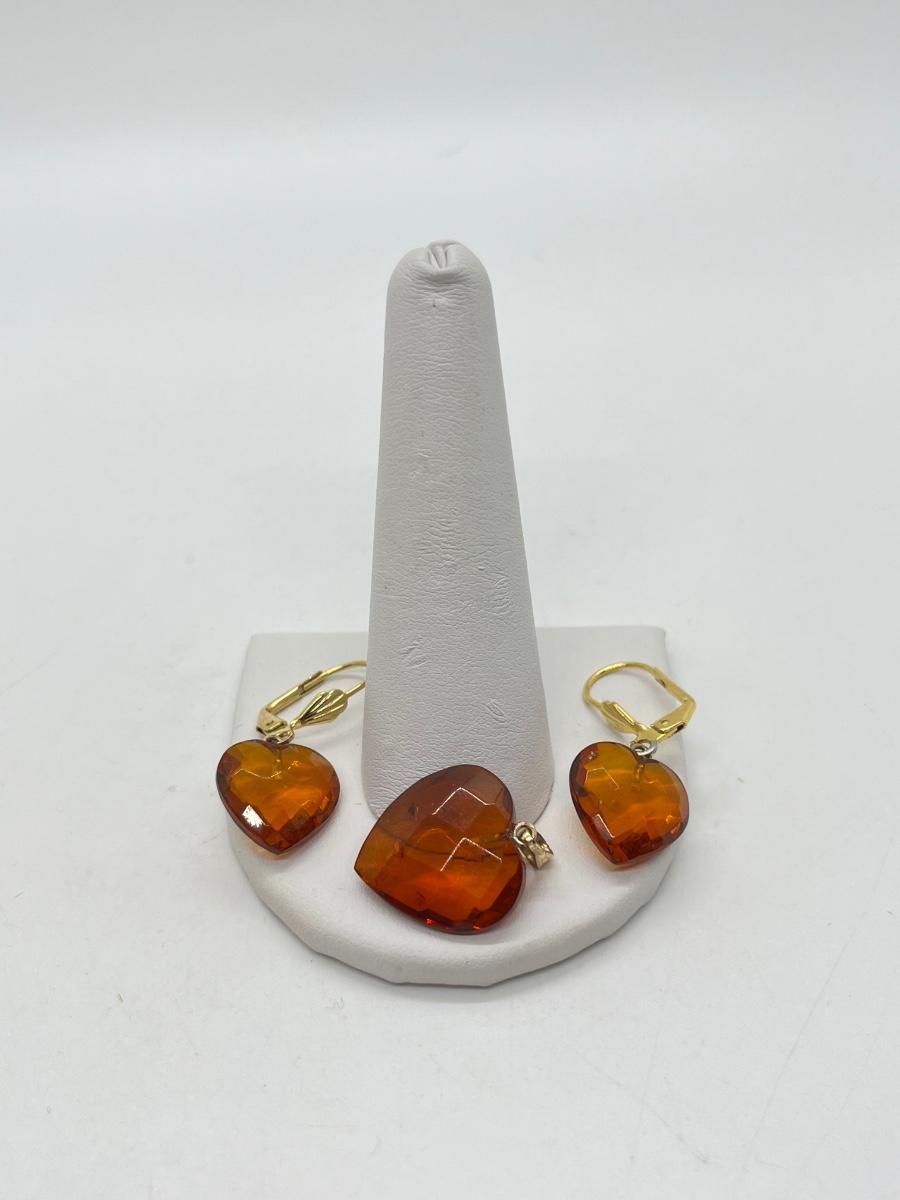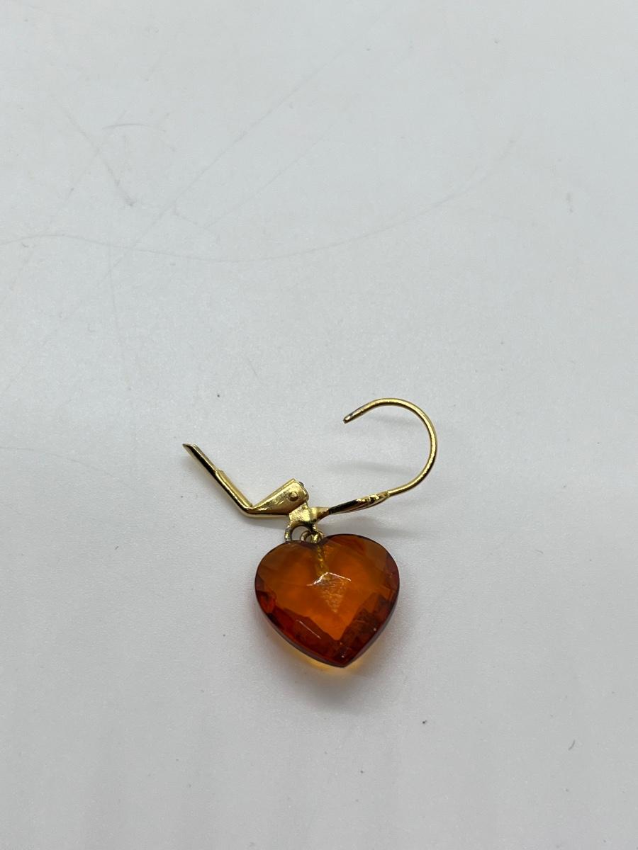 LOT 192 1/20 14K Gold Fill : Amber Heart Pendant + Matching Earrings