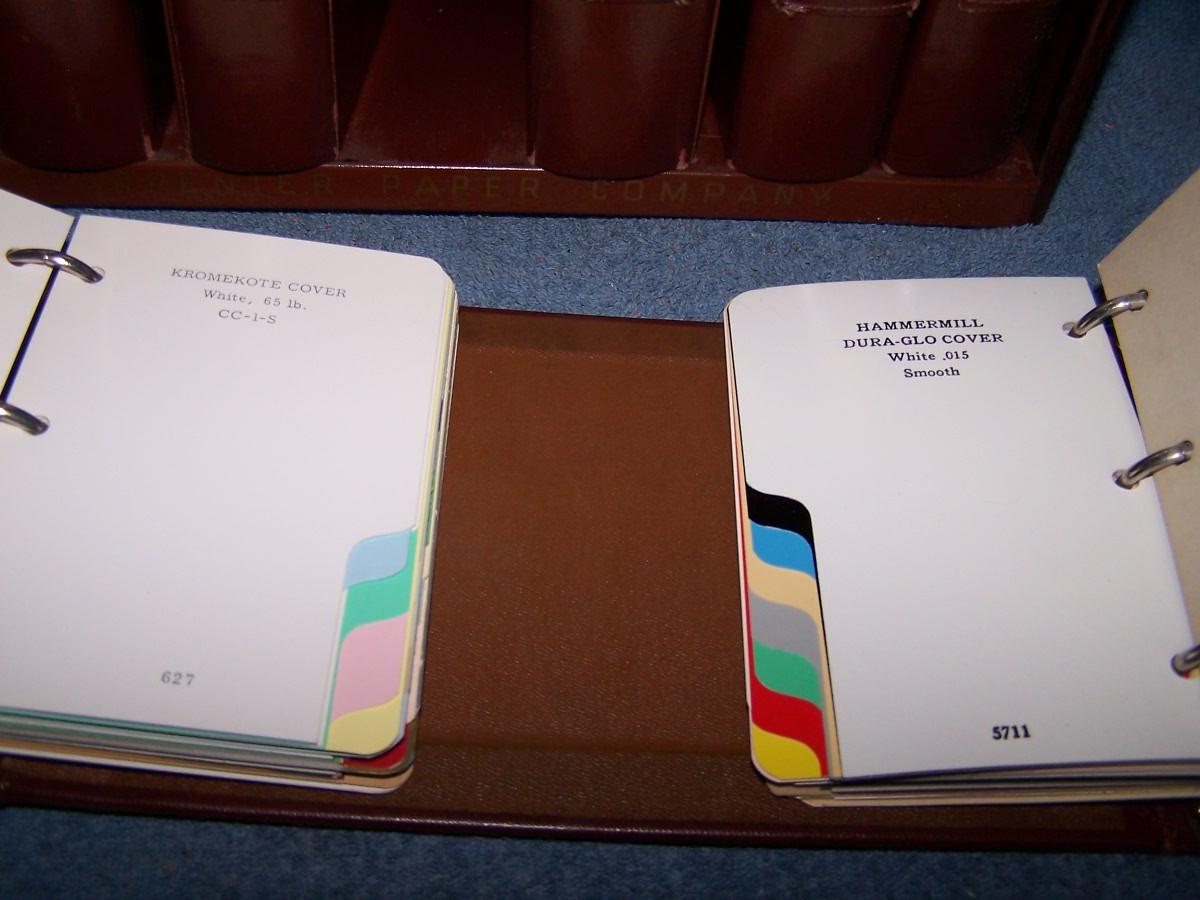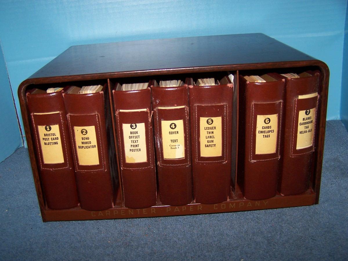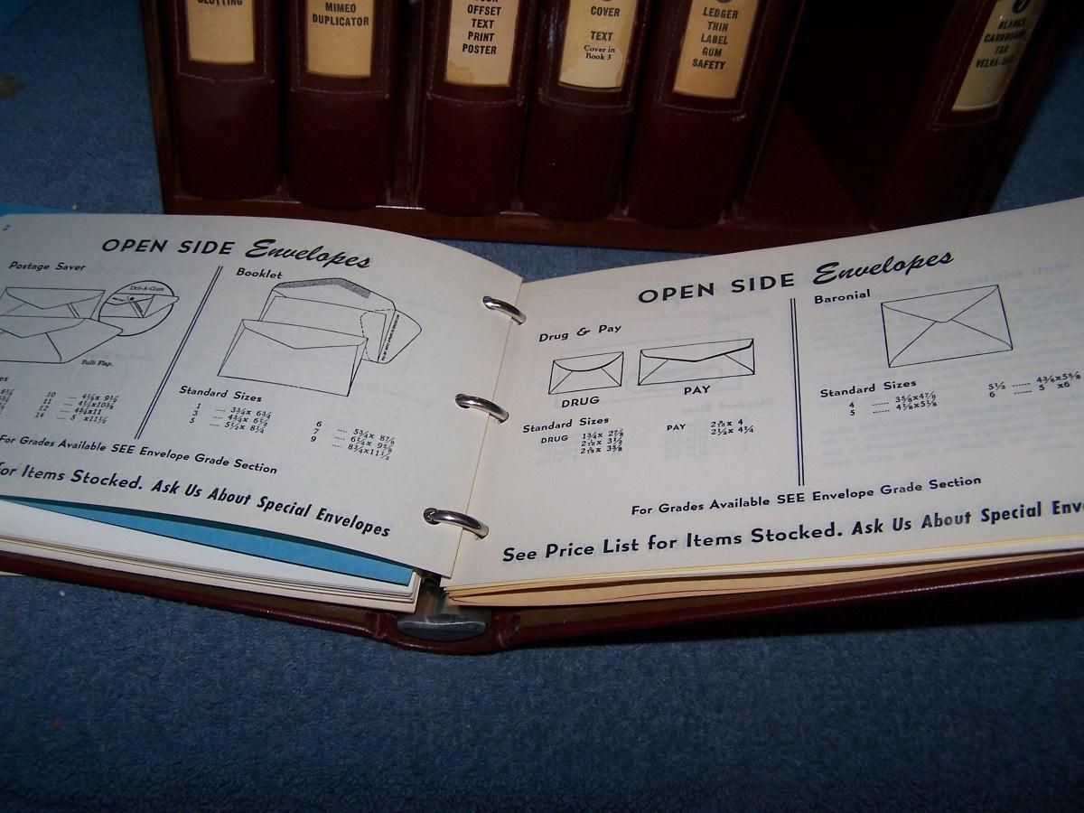 THESE ARE AMAZING VINTAGE CARPENTER'S PAPER CO CATALOGS in CASE!!! CASE IS METAL.. THEY WERE FOUNDED IN 1901... LIGHT WEAR..