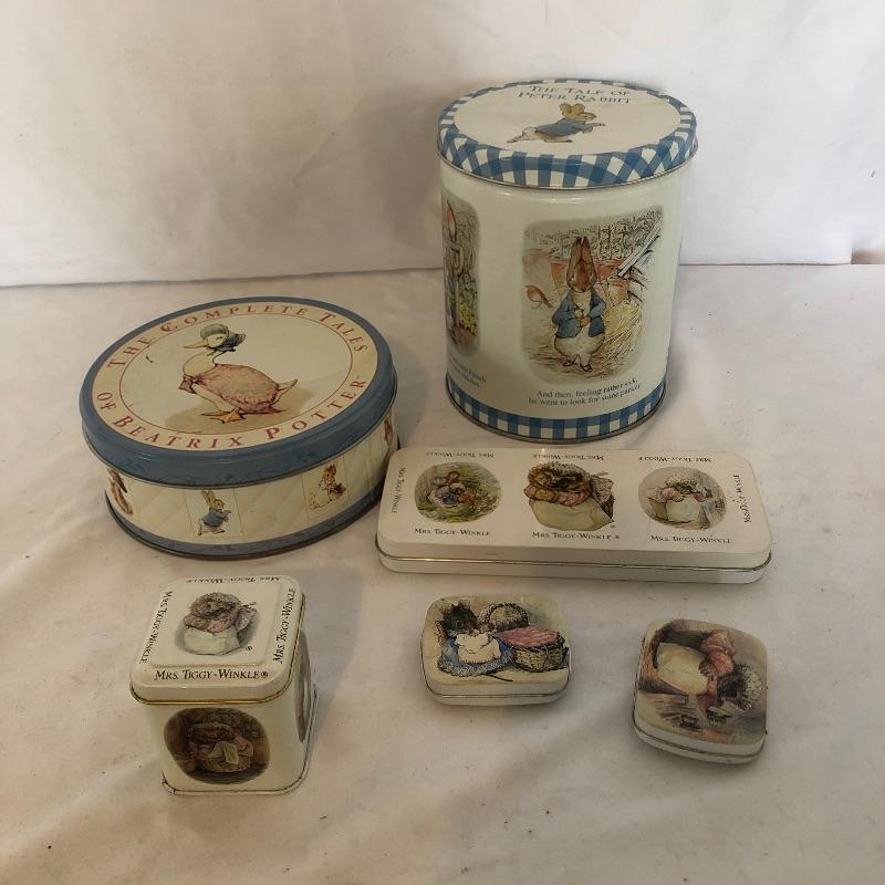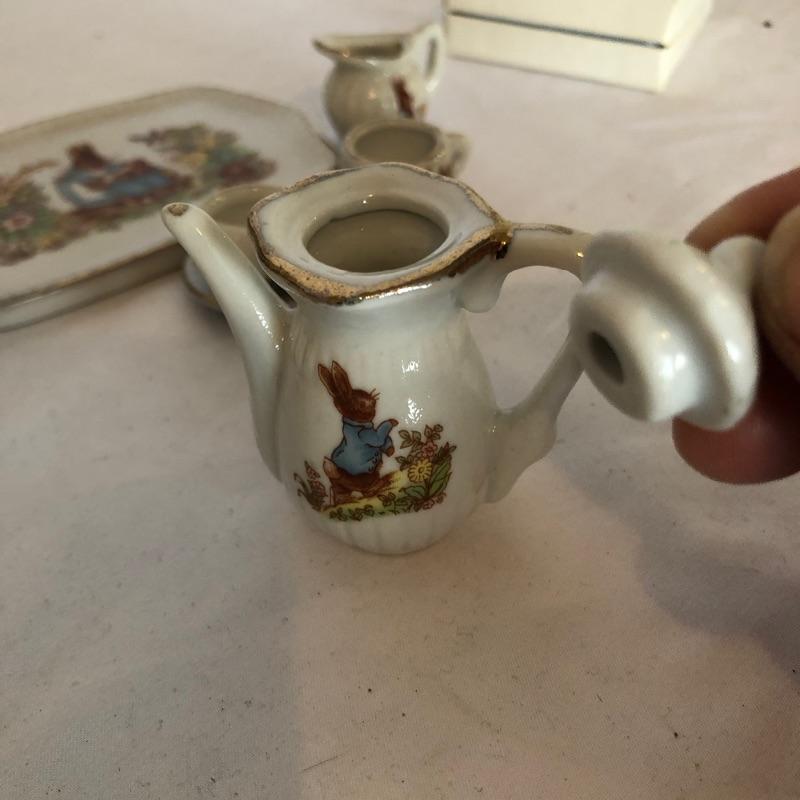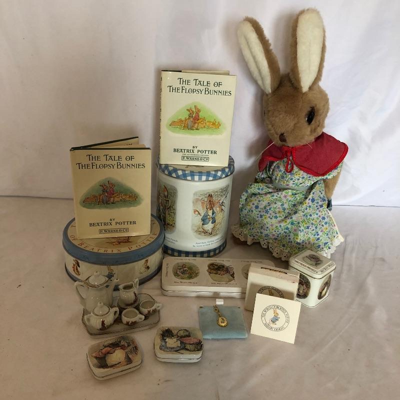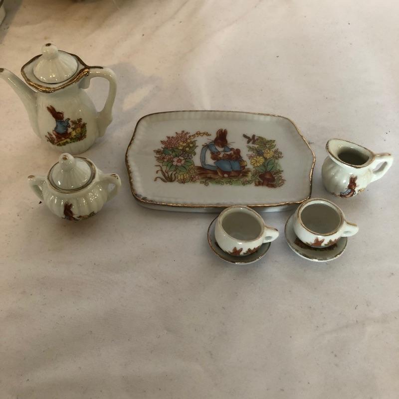 This adorable collection of Beatrix Potter and her famous rabbits includes 2 books, five tins (one of which is a pencil case), a necklace, stuffed animal and a miniature tea set.