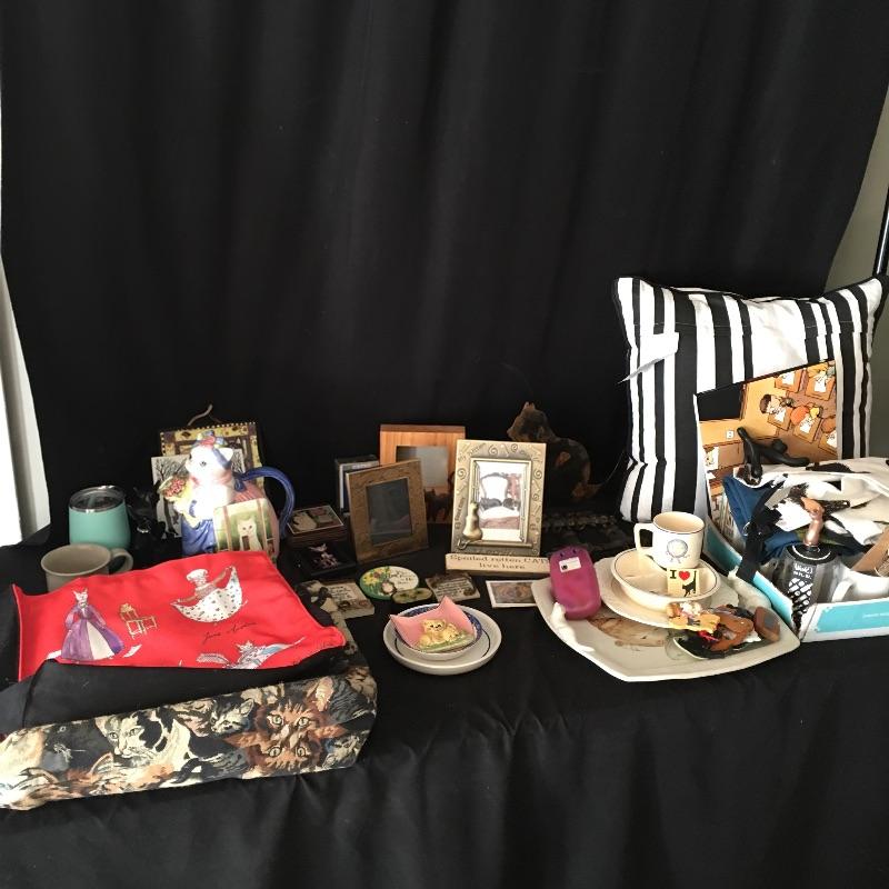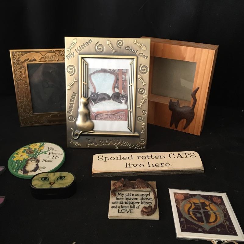 This is the perfect lot for all you cat lovers out there, don’t miss out it would be catastrophic. Lot includes six mugs, metal cat art, cat hooks, towels, frames, teapot, bags, cutting board, signs, bowls, trays and more.