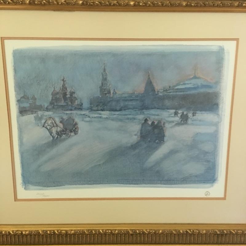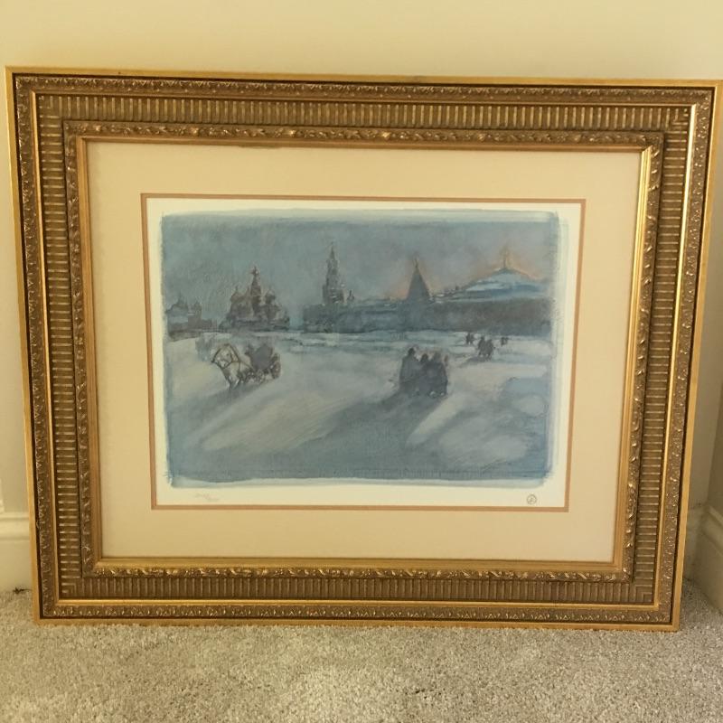 Beautiful numbered Heritage Club Framed artwork that seems to depict Russia. Frame measures 28” x 32.5”.