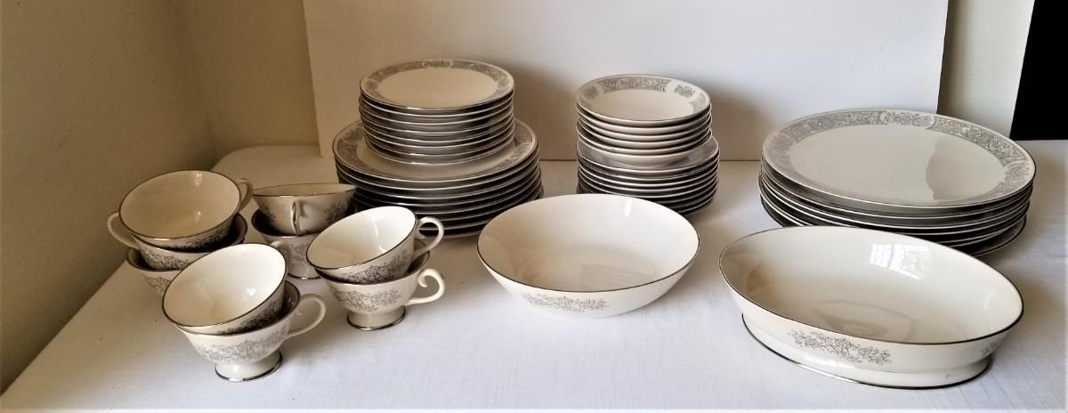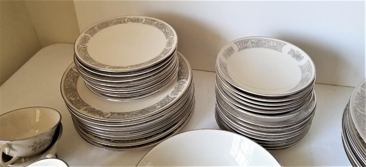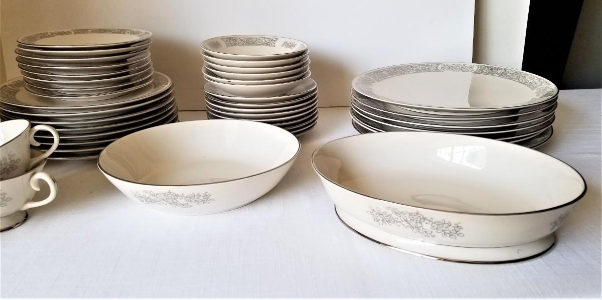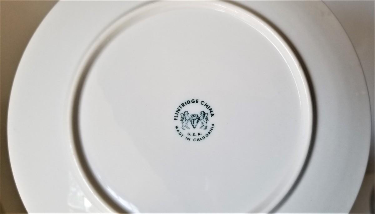 Classic set of California Flintridge China - very Mid-Century. You get all you see here: 7 plates (10.75" across), 2 vegetable bowls, 9 cups/5 saucers, 6 small bowls, 8 bread/butter plates, 8 Salad plates. All in good condition.