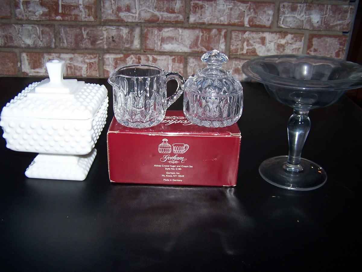 THIS IS LOVELY MISC VINTAGE PRETTY ITEMS... THE CRYSTAL COMPOTE IS 6 1/4'' TALL... SLIGHT WEAR...