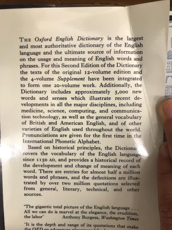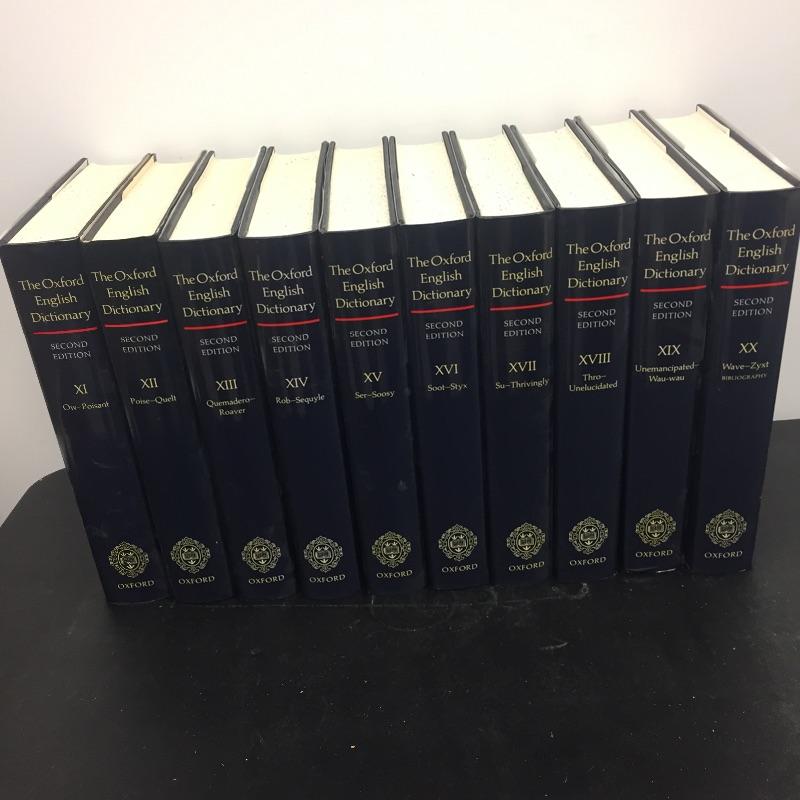 Complete set of Oxford English dictionary second edition twenty volumes. It’s amazing how many words are in the English language. Great condition. All have cover jackets. Local Pickup Only