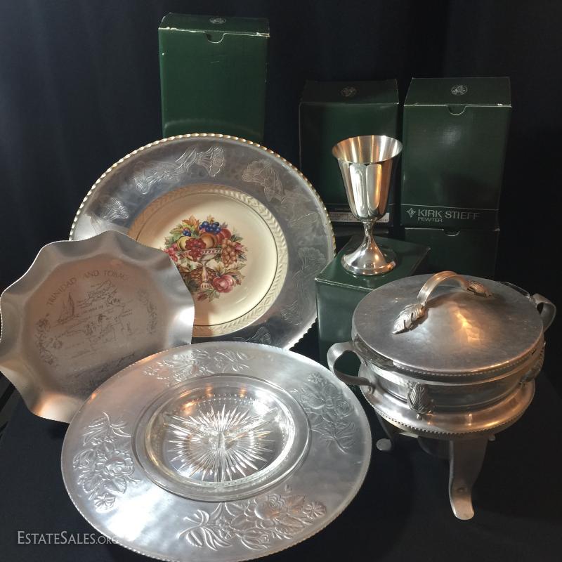 Lot 192 - Pewter Kirk Stieff Goblets & Aluminun Serving Pieces