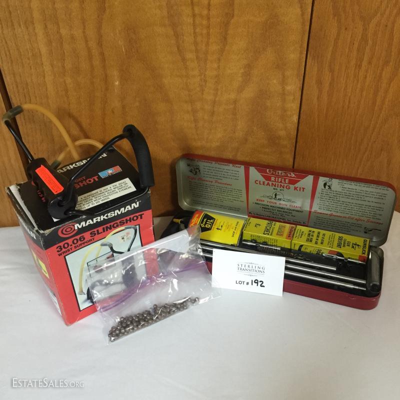 LOT 192 - Rifle Cleaning Kit and Marksman Sling Shot