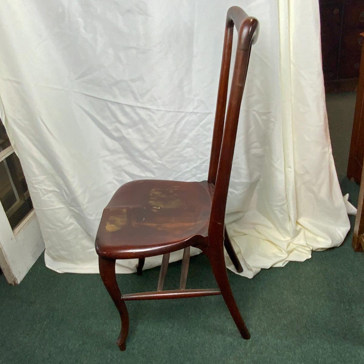 Single Mahogany Dining Chair. The only thing wrong is that I wish there were more of them! //::\\ Please see photos for details and condition. No attempt has been made to hide any imperfections. All items listed in this auction are warehouse items, and need to be cleaned. A majority of the items need restoration as well. All items are sold AS IS and WITHOUT GUARANTEE. If you are uncertain about an item, DO NOT BID. Due to the nature of this online auction in-person inspection is HIGHLY recommended. All Sales are FINAL. Pick Up Times are FIRM. Please confirm with your own schedule that you can pick up in the scheduled times listed in the Terms and Conditions. Any questions please message the auctioneer. DO NOT Contact The Harp Gallery.