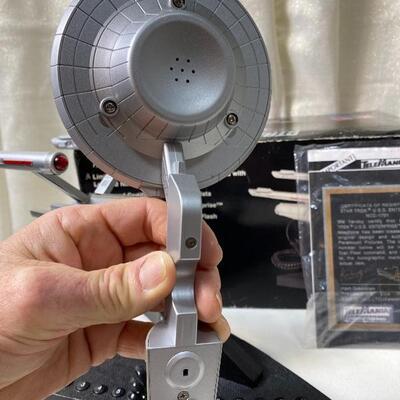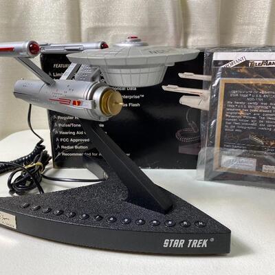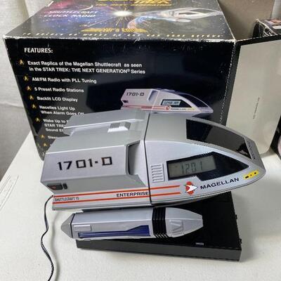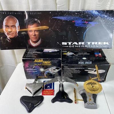 Poster “TWO CAPTAINS. ONE DESTINY” 36”-12” HEAVY DETAILED MODELS PEWTER Franklin Mint 1991 Romulan Warbird needs glue Franklin Mint 1991 Needs gun glued Franklin Mint U. S. S. Enterprise NCC 1701 Needs glue on left propulsion 1994 Shuttlecraft Clock Radio Plugged in came on 1994 Star Trek Telephone Enterprise untested