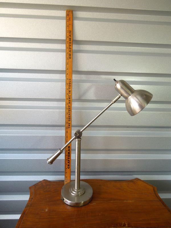 24" high desk lamp. No cord. Polished aluminum finish. Needs cleaning.