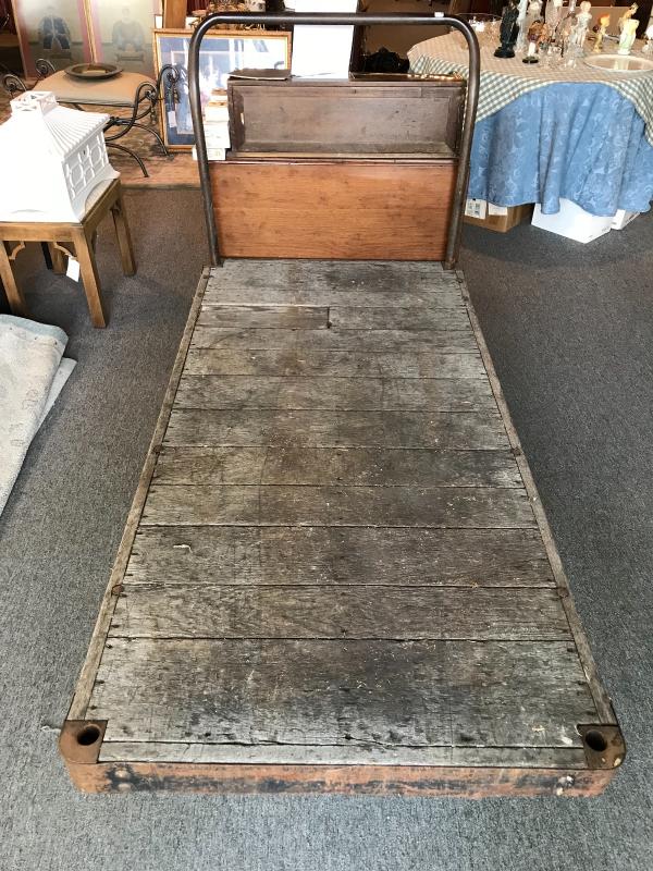 Lot 192- Vintage Iron and Wood Industrial Flat Cart/Dolly