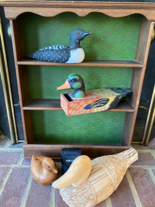 Antique Handmade wooden shelf with decoys