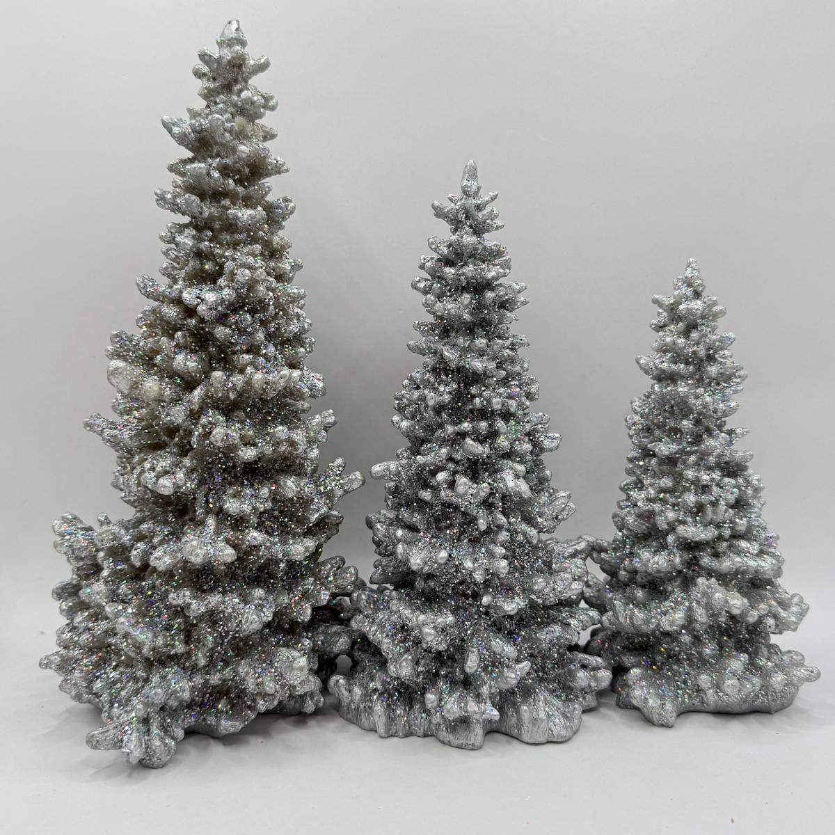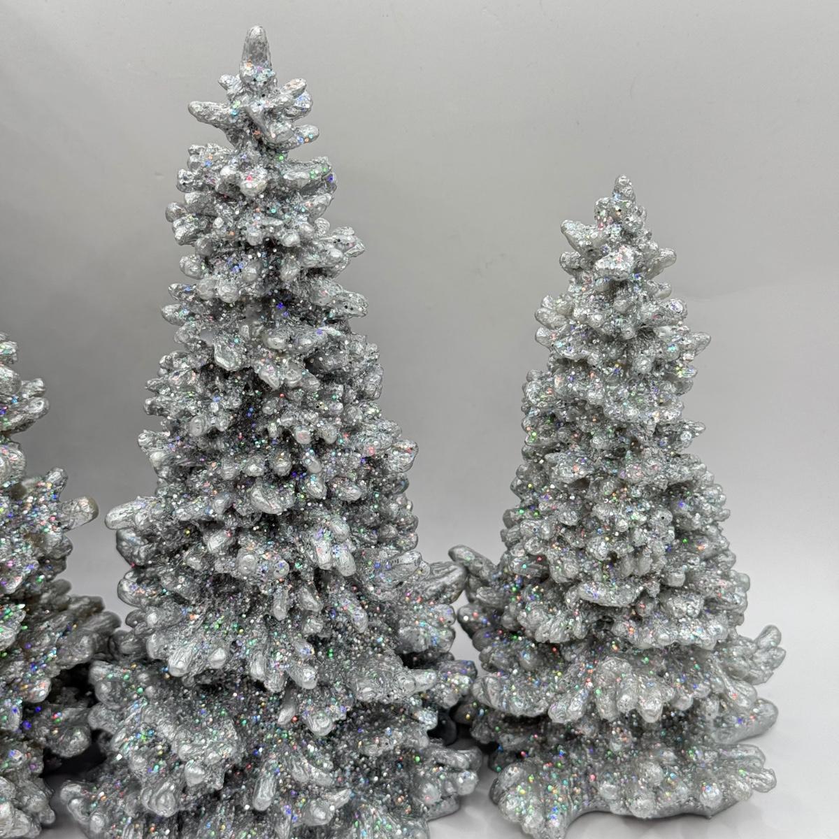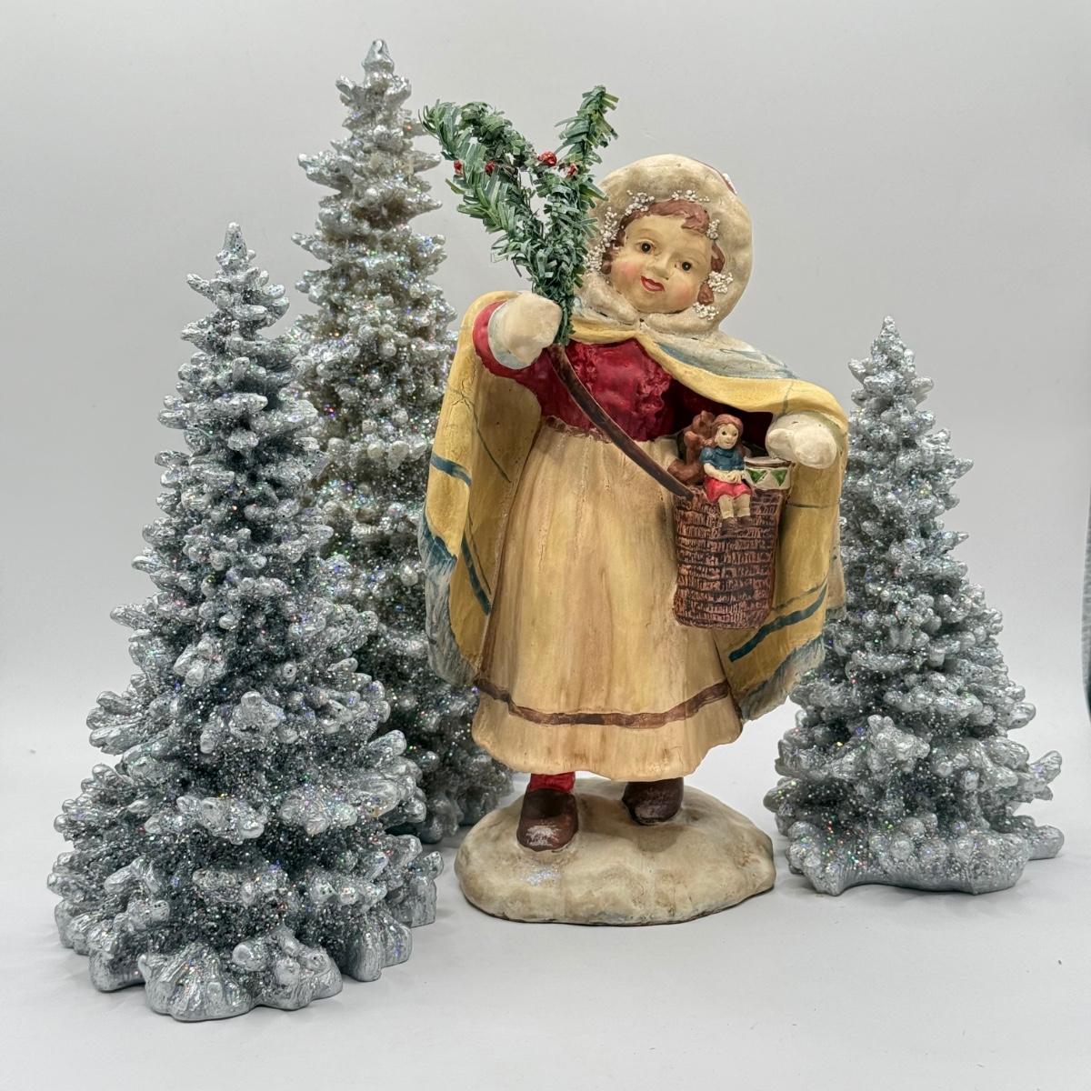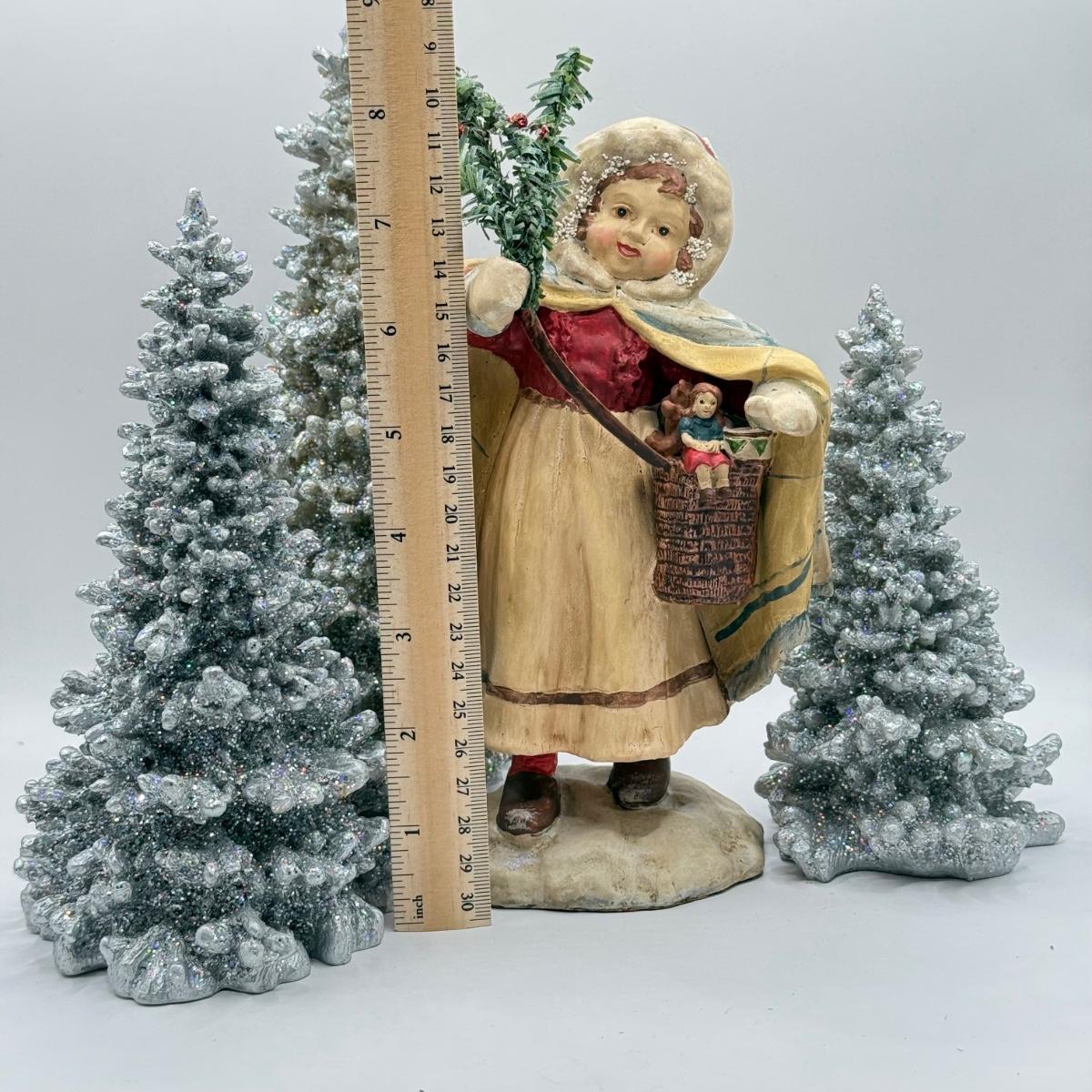 LOT 192L: Department 56 Christmas: Set of 3 Glitter Trees & Child Figurine