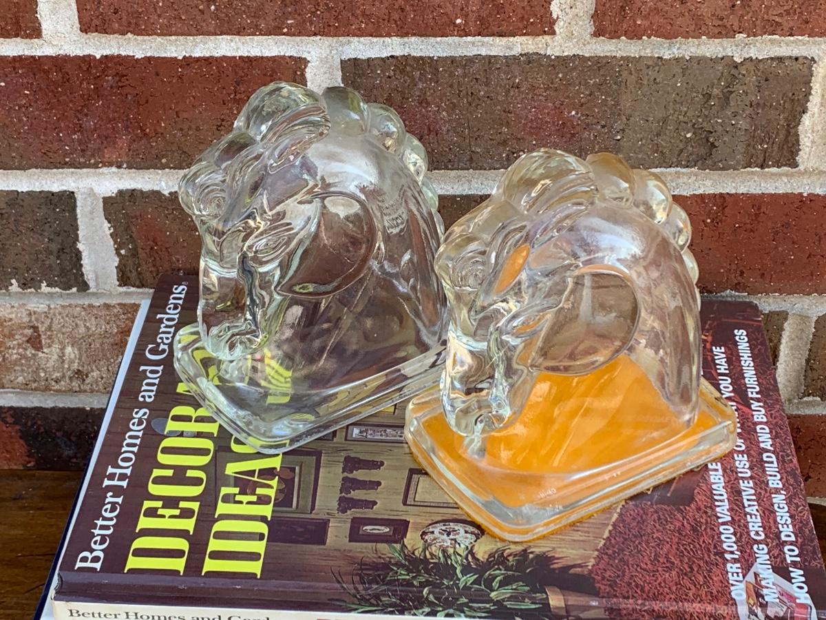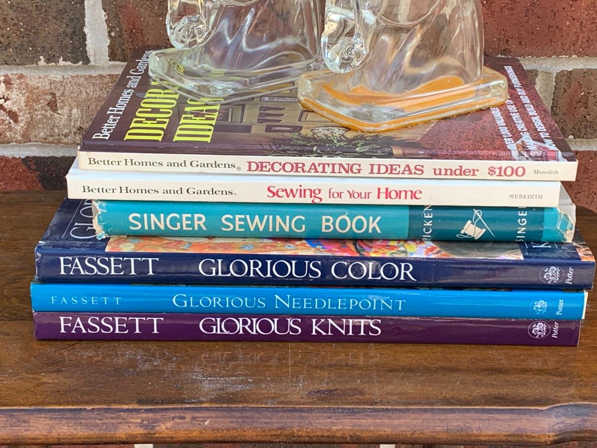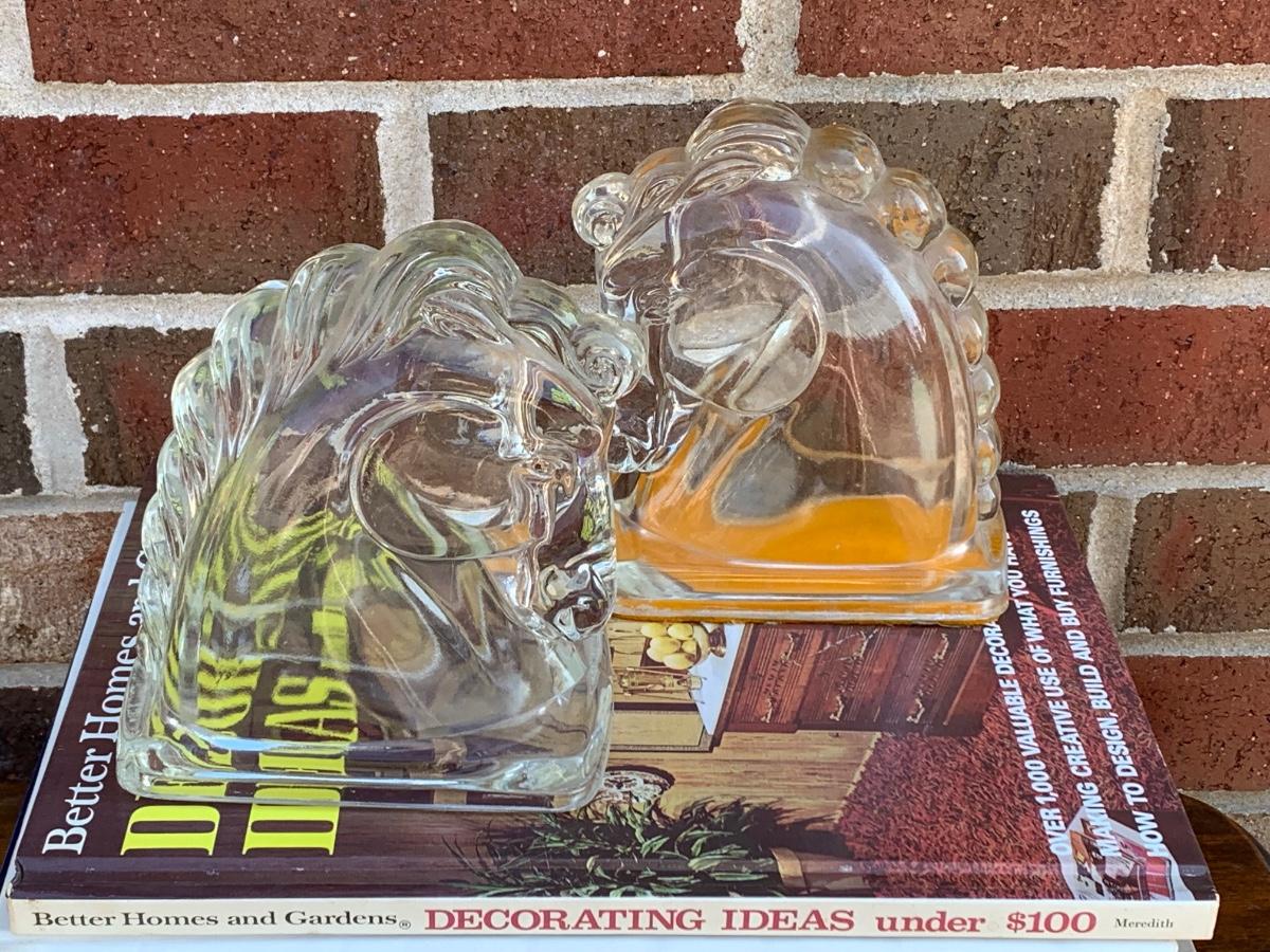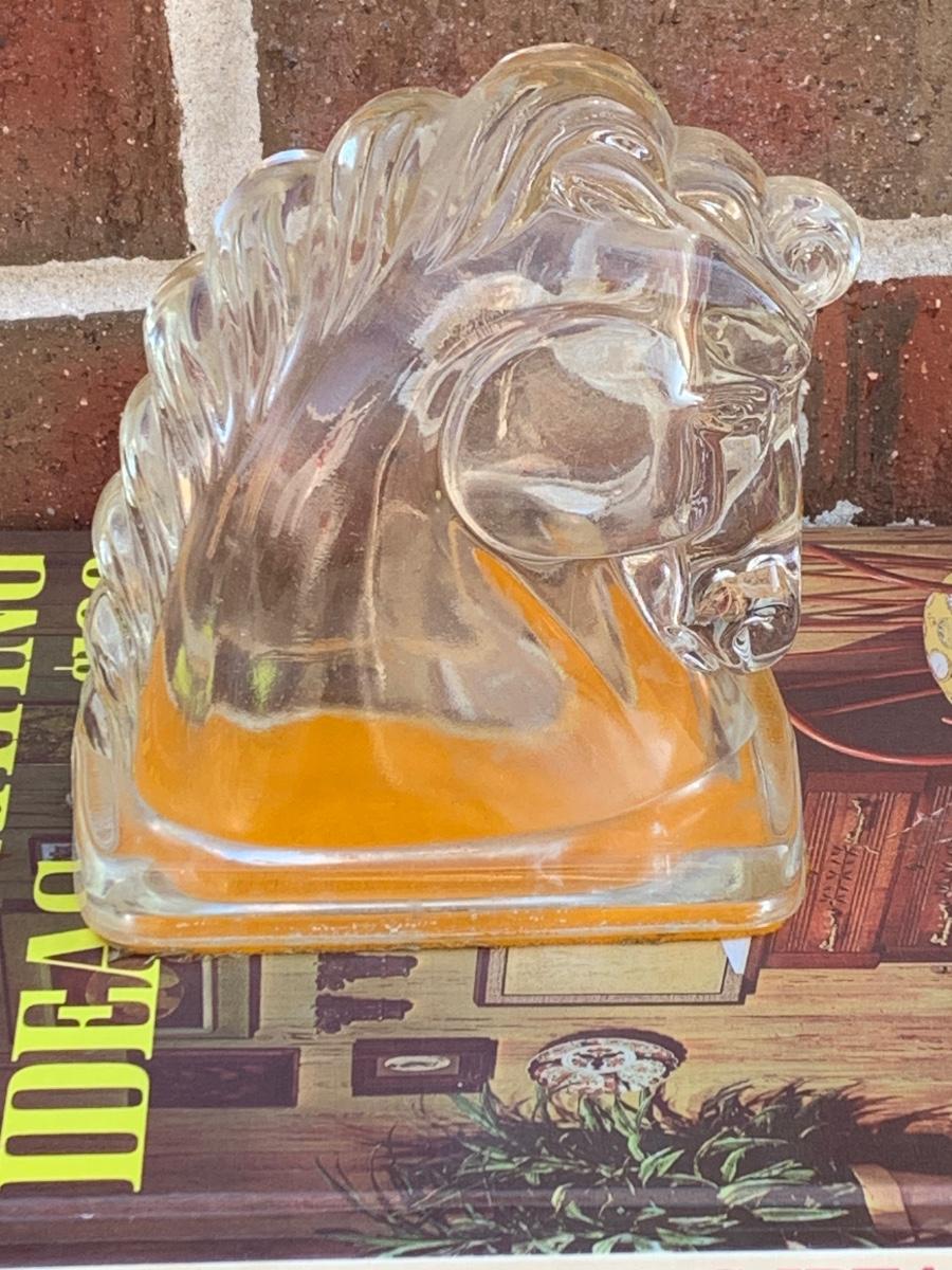 Includes table, lamp with no bulb, two clear horse head bookends and a small collection of craft books.