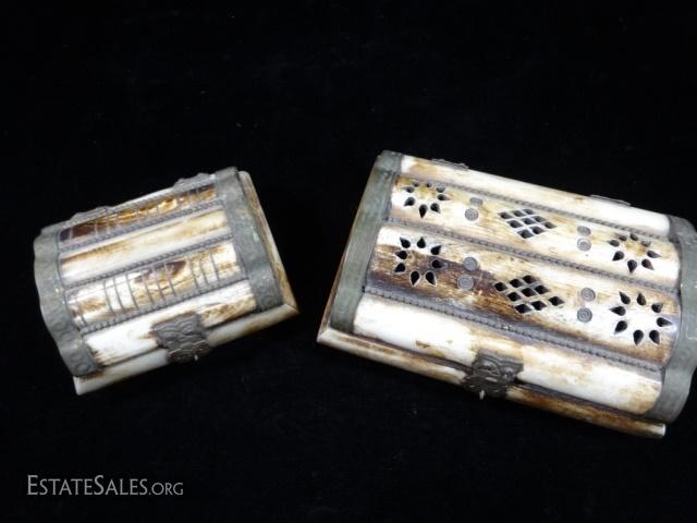 LOT 193: 2 PC CAMEL BONE BOXES, APPROX 3" X 4" & APPROX 4" X 6"