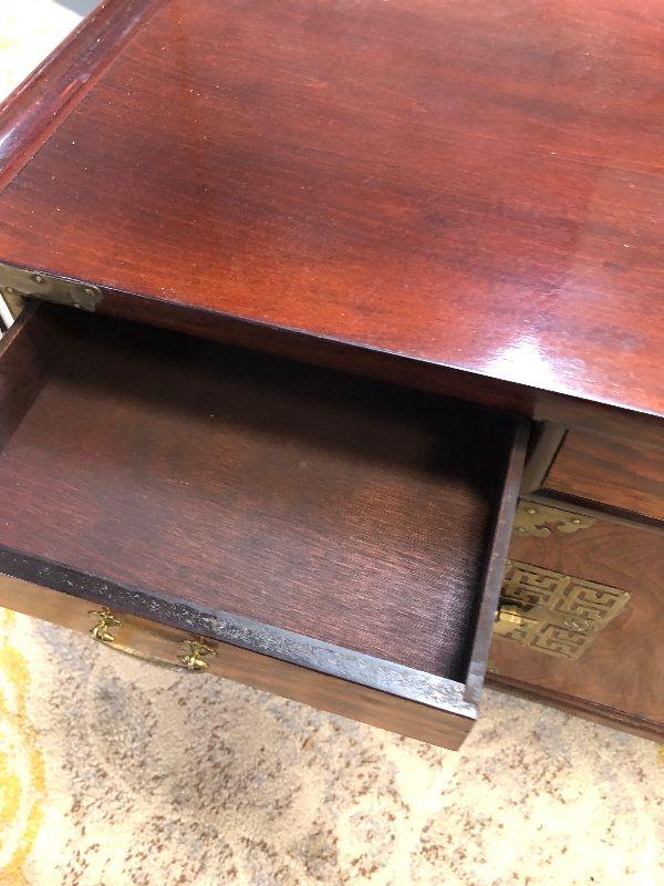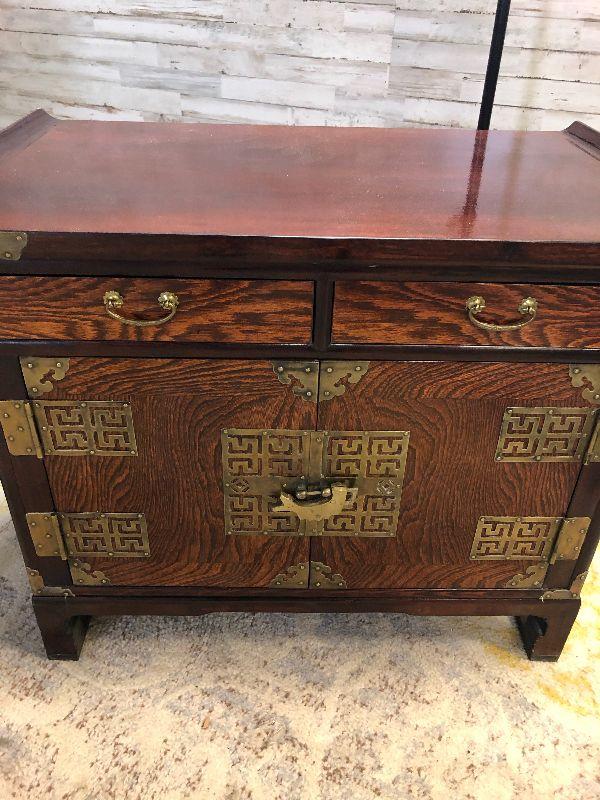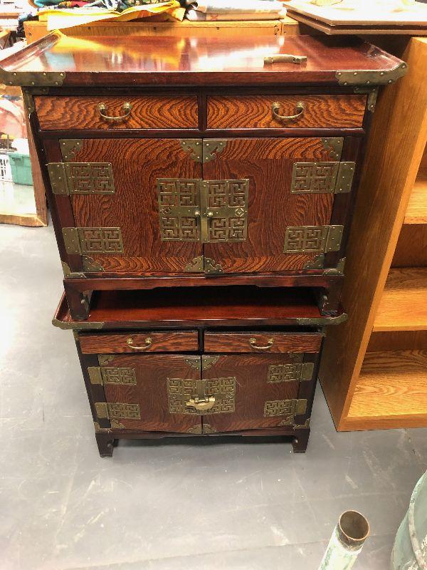 Shows some wear from use and age. 27 x 16 x 28 Part of one of the locks is missing.