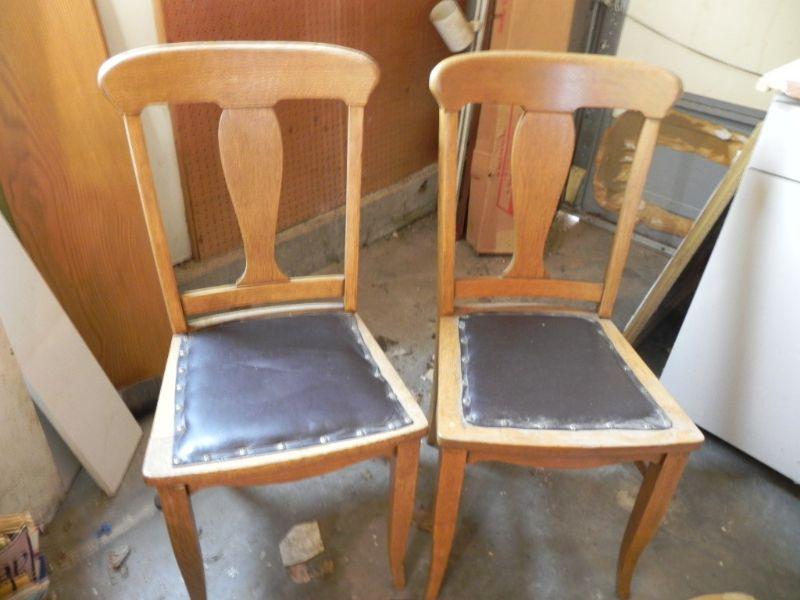 2 WOODEN CHAIRS WITH LEATHER SEATS
