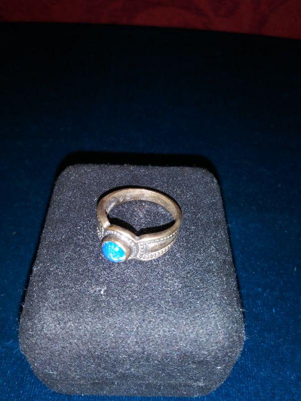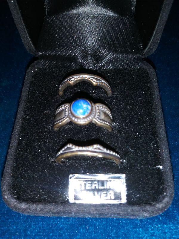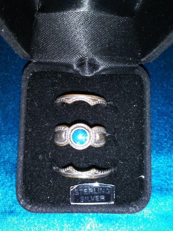 TRIPLE BAND STERLING SILVER RING WITH BLUE TURQUOISE STONE WEIGHS 8.22g