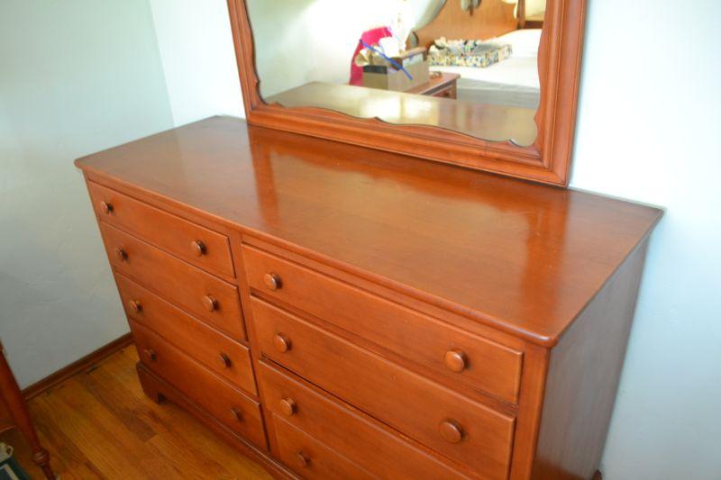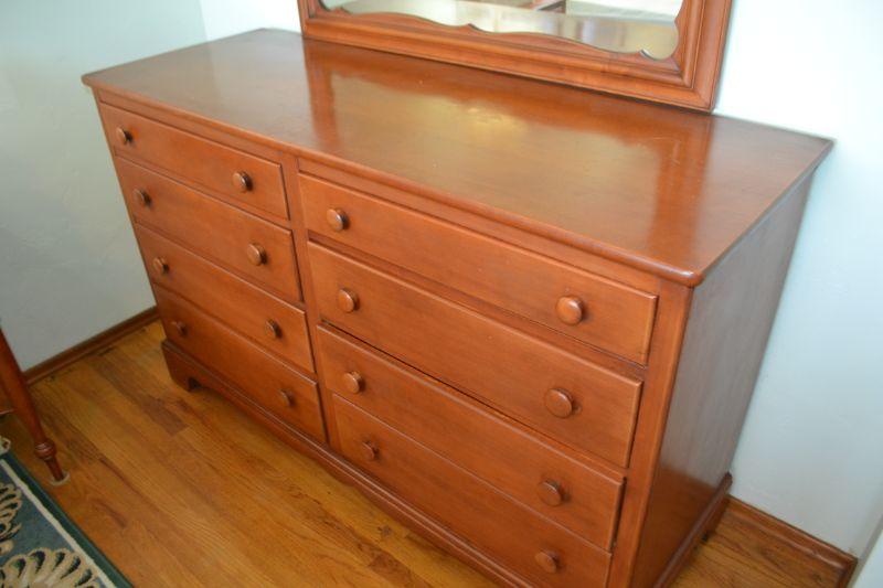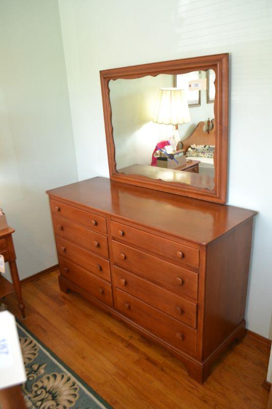 LOT 193  WILLETT GOLDEN BERYL MAPLE DRESSER WITH MIRROR
