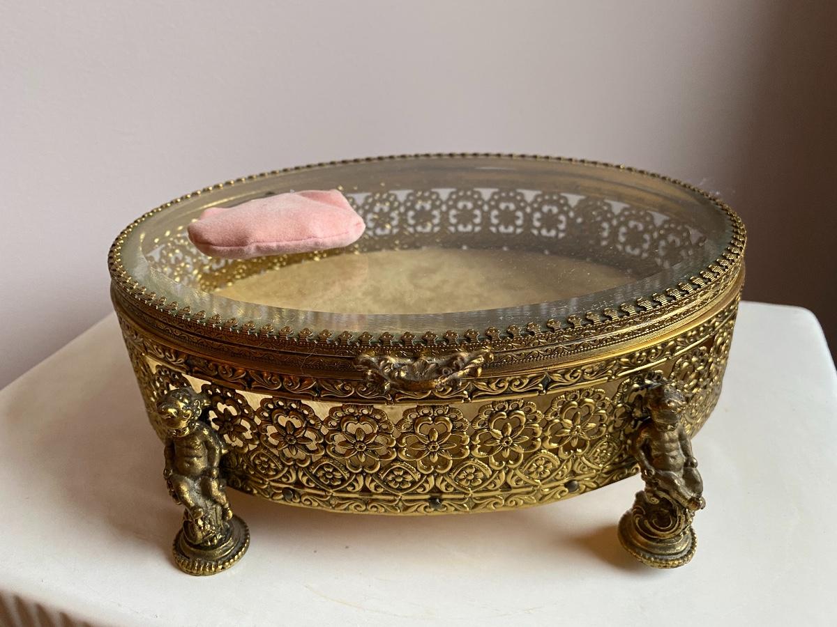 Lot 193: Vintage Footed Jewelry Box with Matching Accessories