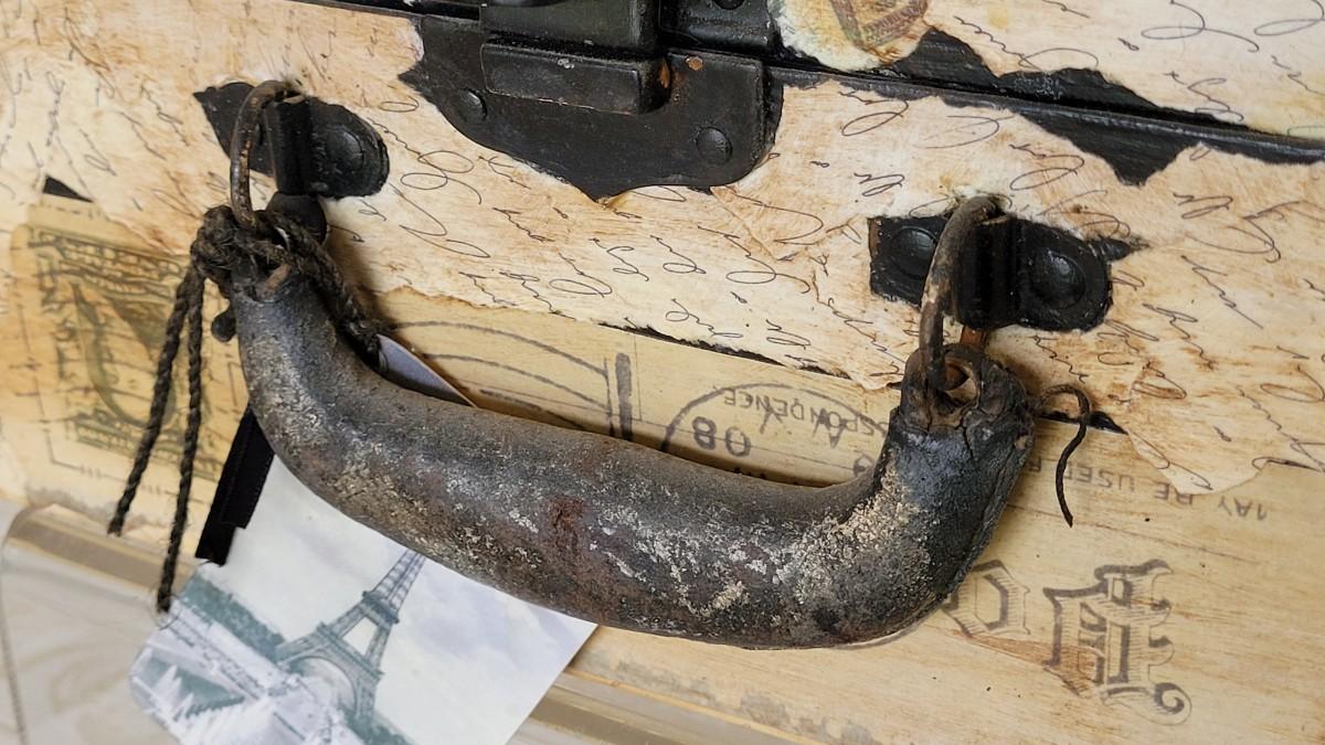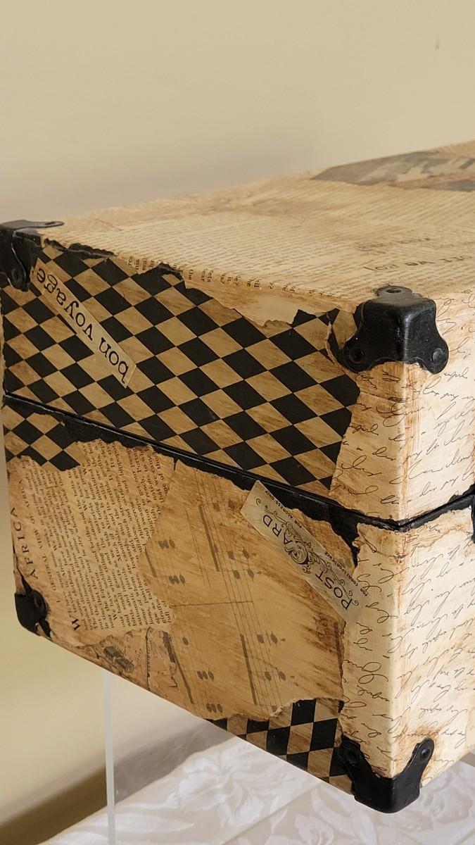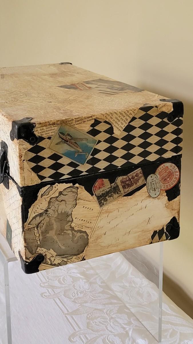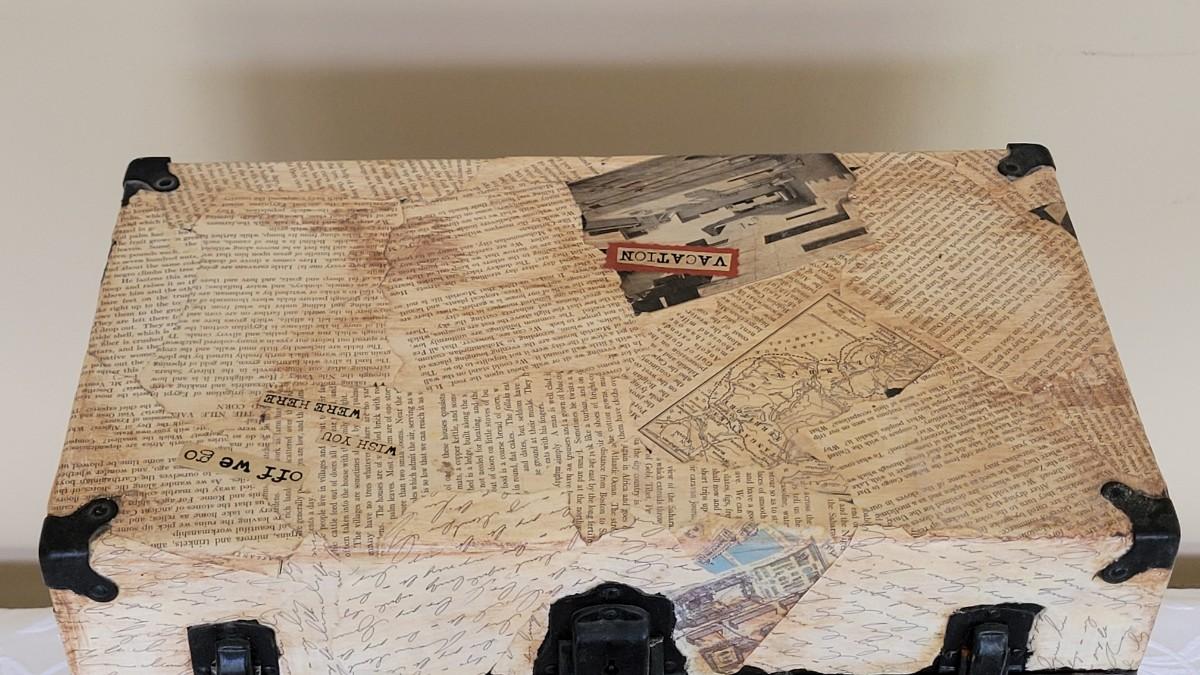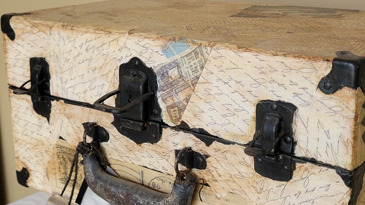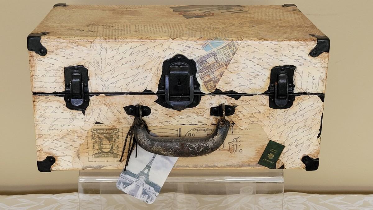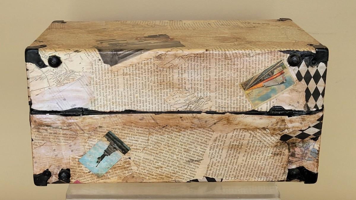 Lot 193: Antique Luggage with Paper Collage by Mary Ann York