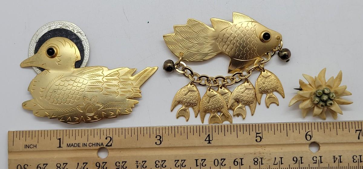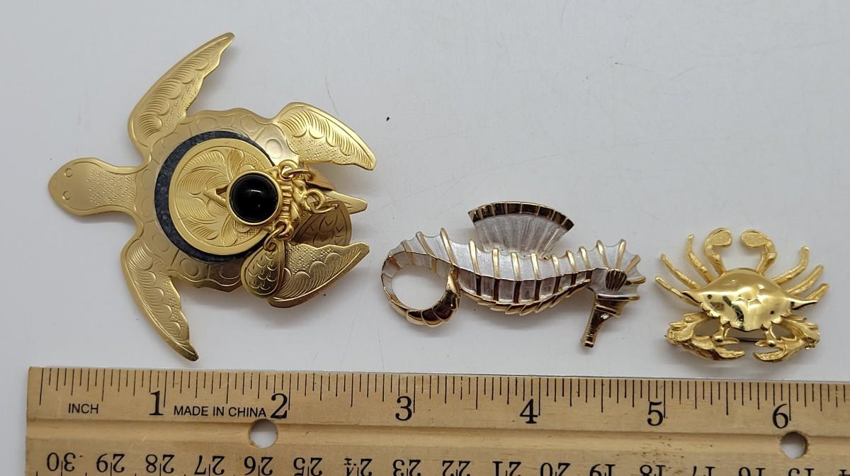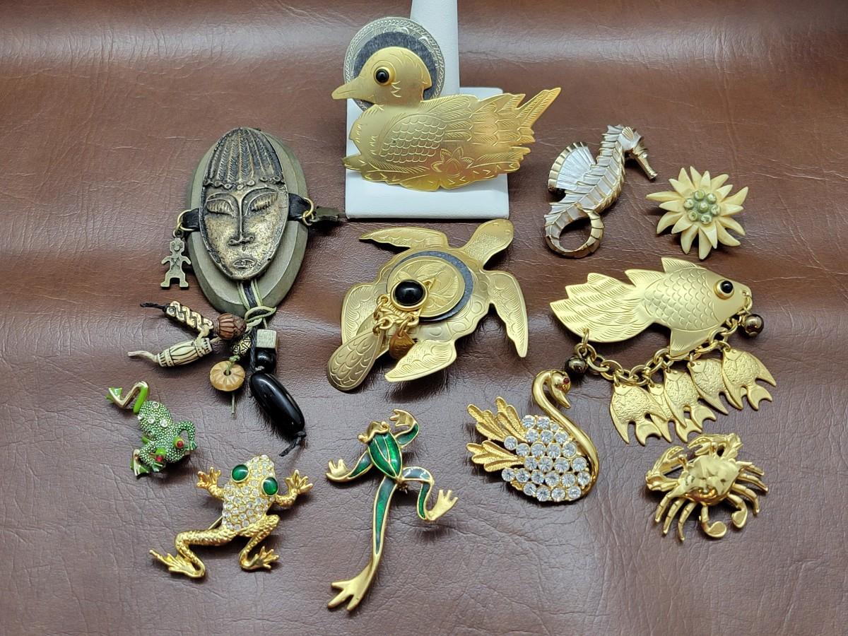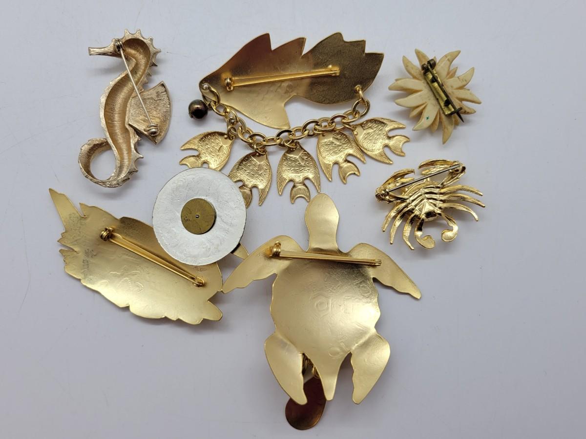 Lot 193: Gold Tone Brooches: Sea Animals, Frogs, & More!