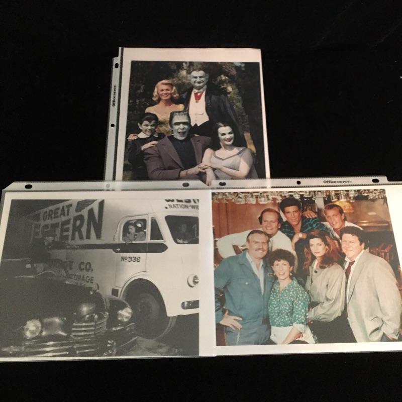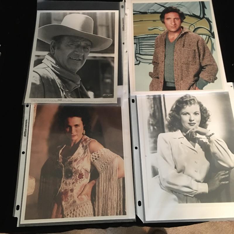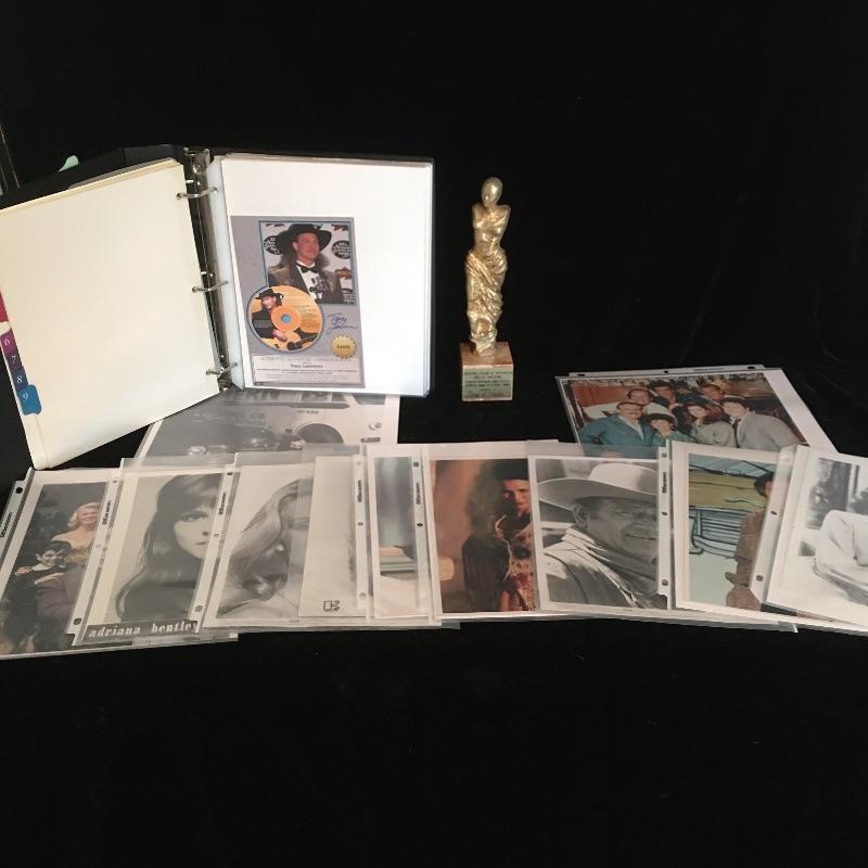 Actor photos and more. Lot includes brass statuette, photos of actors including John Wayne Judd Hirsch, cast of Cheers and The Munsters and more. Also includes signed theatre programs.