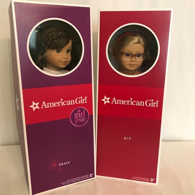 Two full sized 18” American Girl Dolls With original boxes. Kit and Grace are both in very nice shape, Grace is ready to explore Paris with her awesome accessories and her very own Metro card! Kit is complete with freckles and glasses! Grace has a small mark on one arm noted in photos. Books are not included. Shipping available.