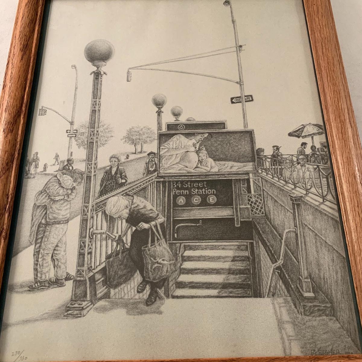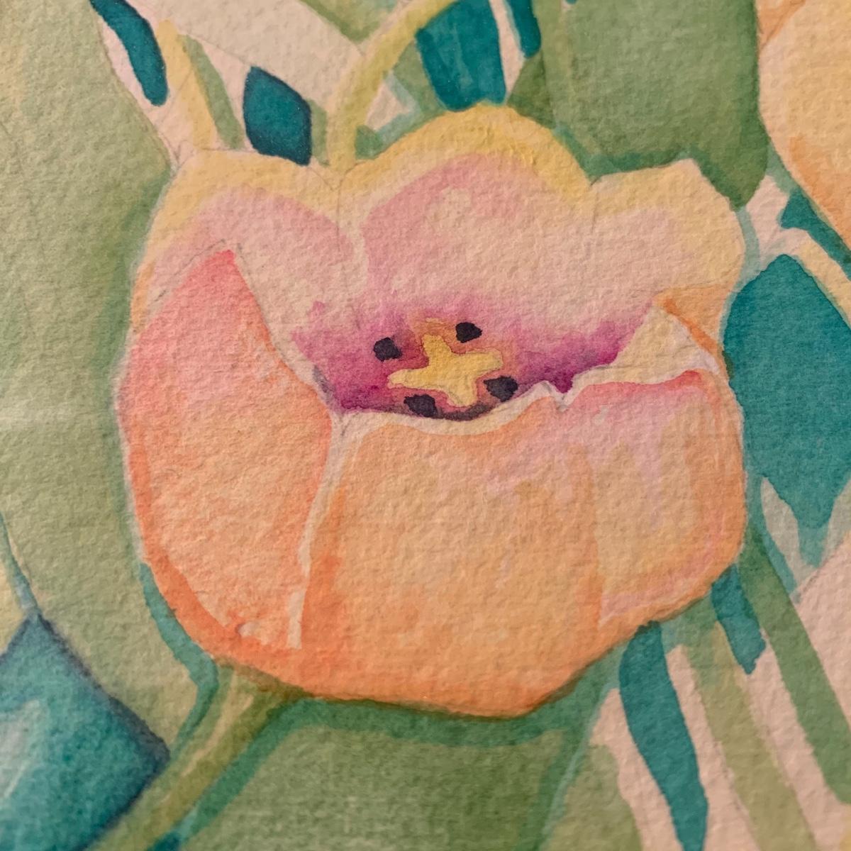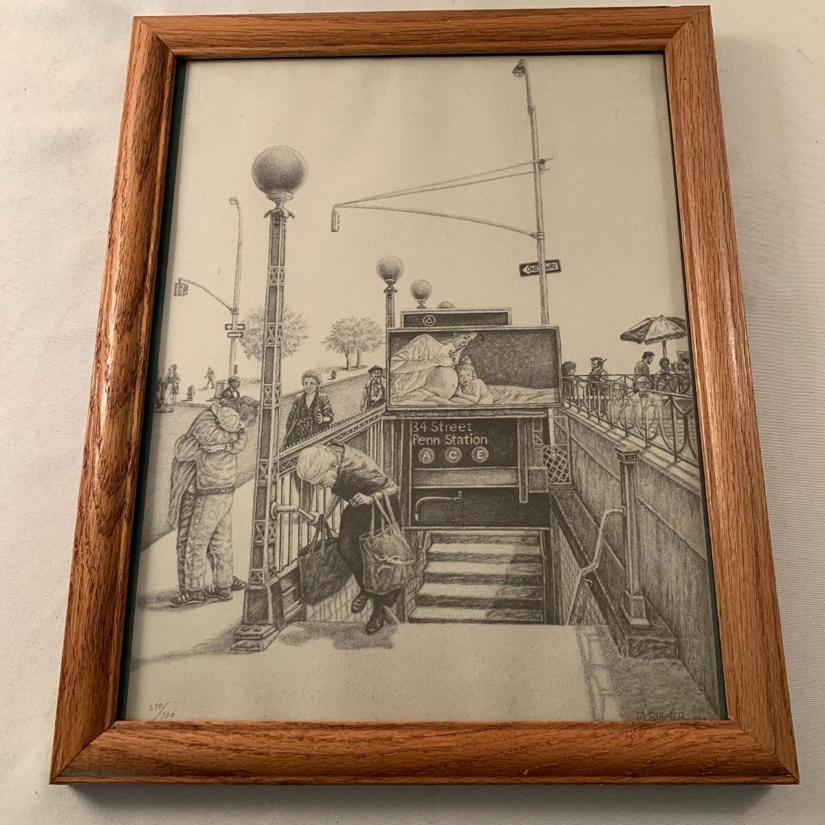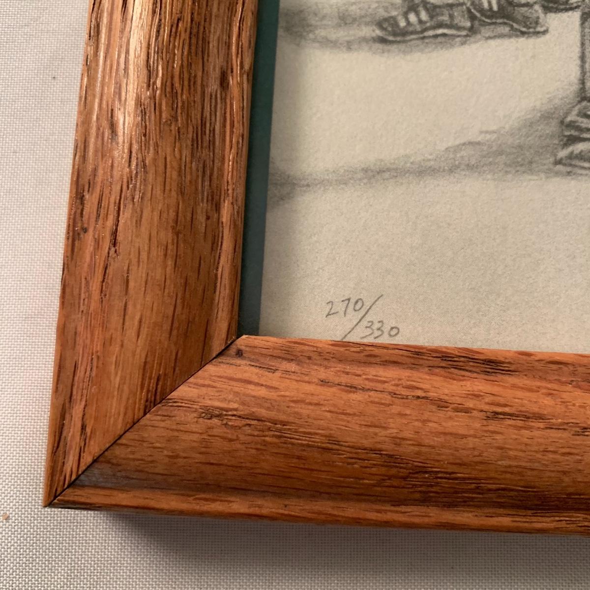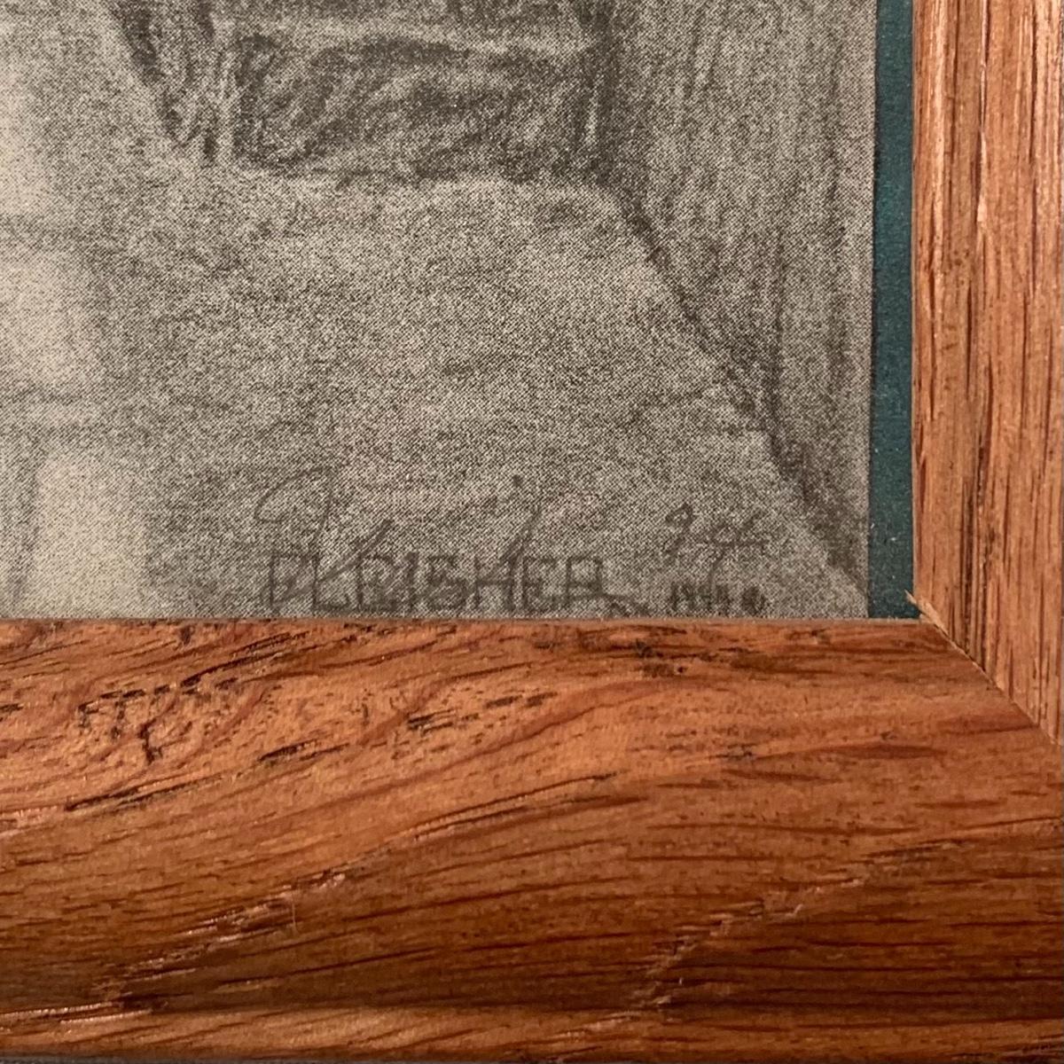 These delightful two pieces of art includes one black and white pencil print and one watercolor. The pencil print is mounted in a simple wood frame and has a signature, see images. It is also numbered 270/330. It measures 15.5in x 12.5in. The yellow tulip art is a watercolour that also has a signature and is matted and mounted in a gilded frame. It measures about 13.5in x 16.5in. Shipping available.